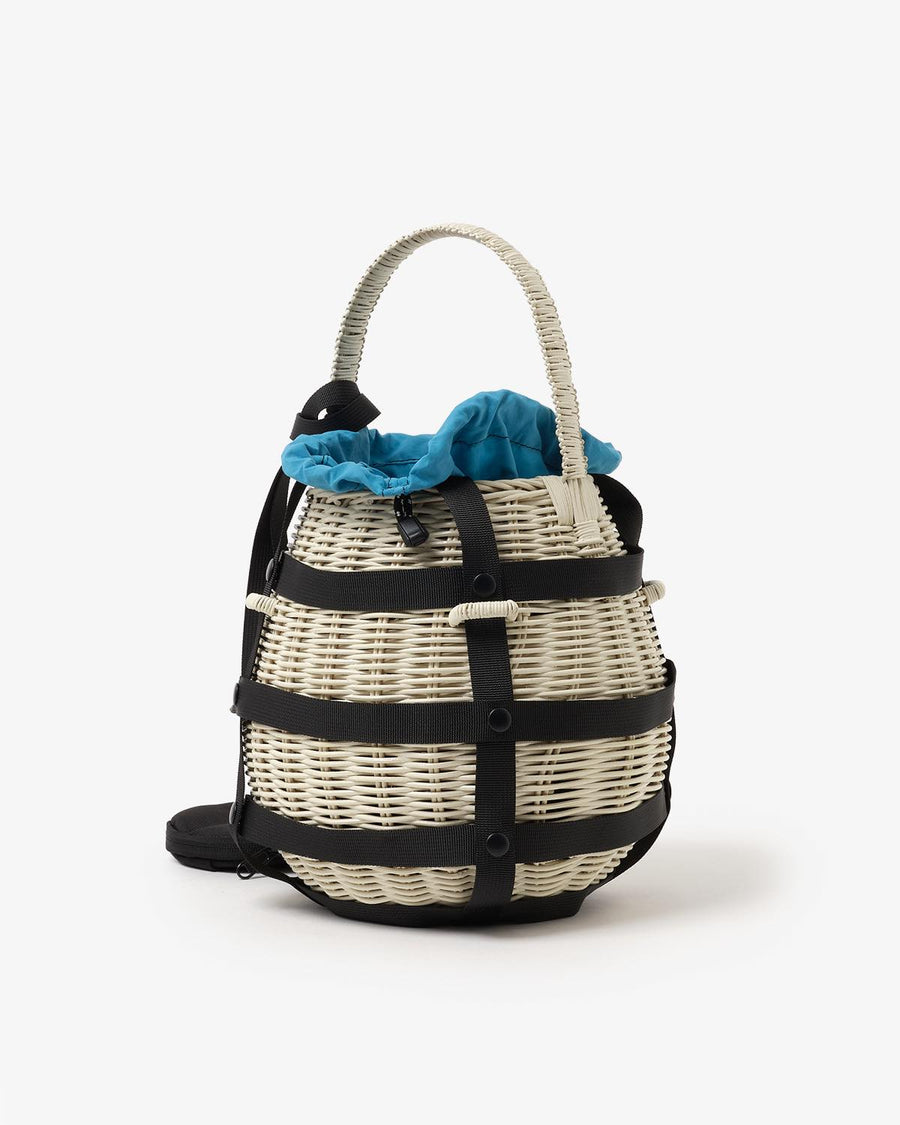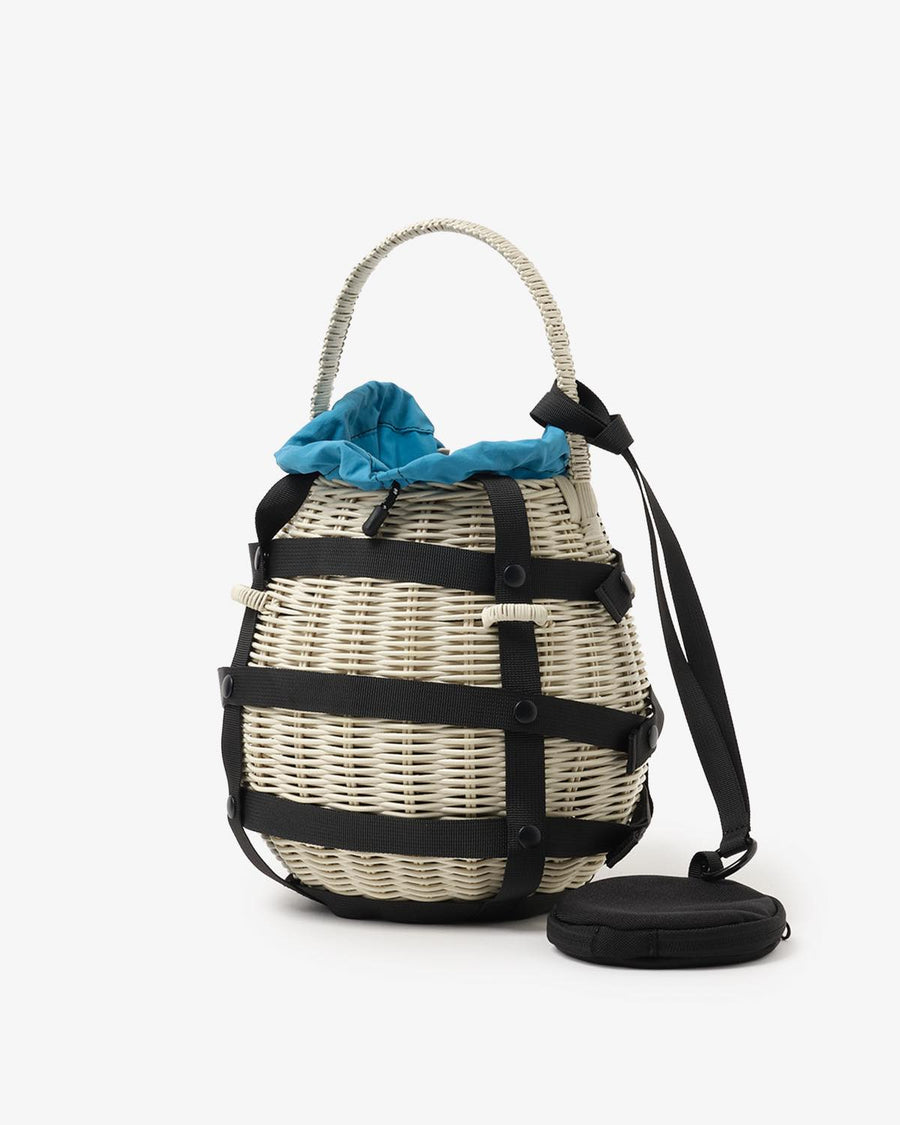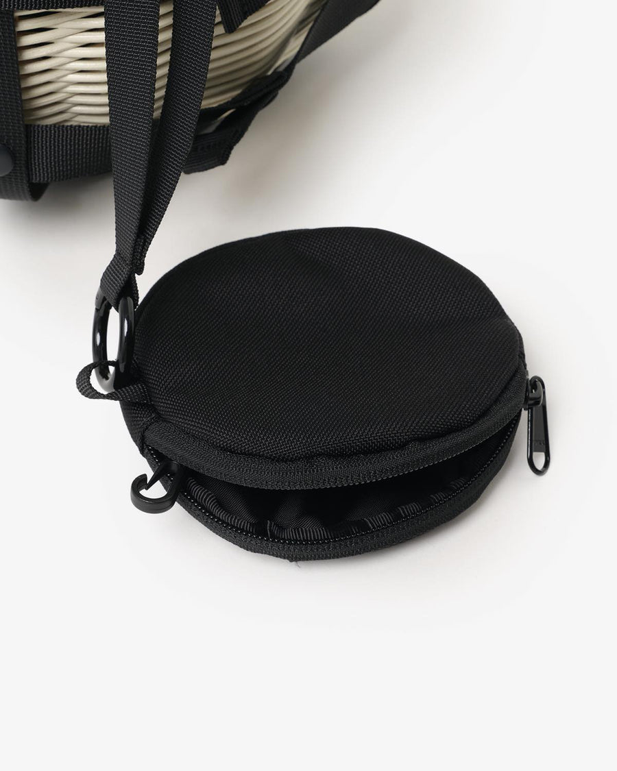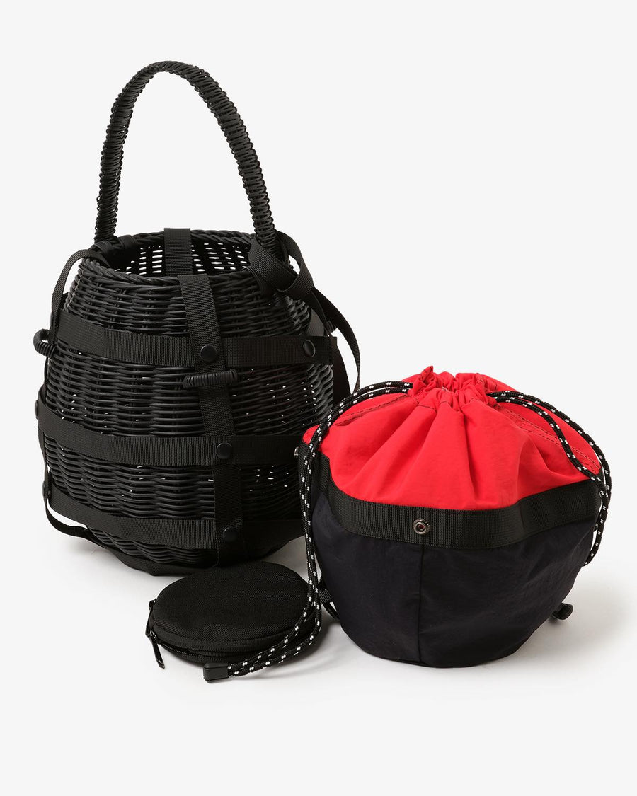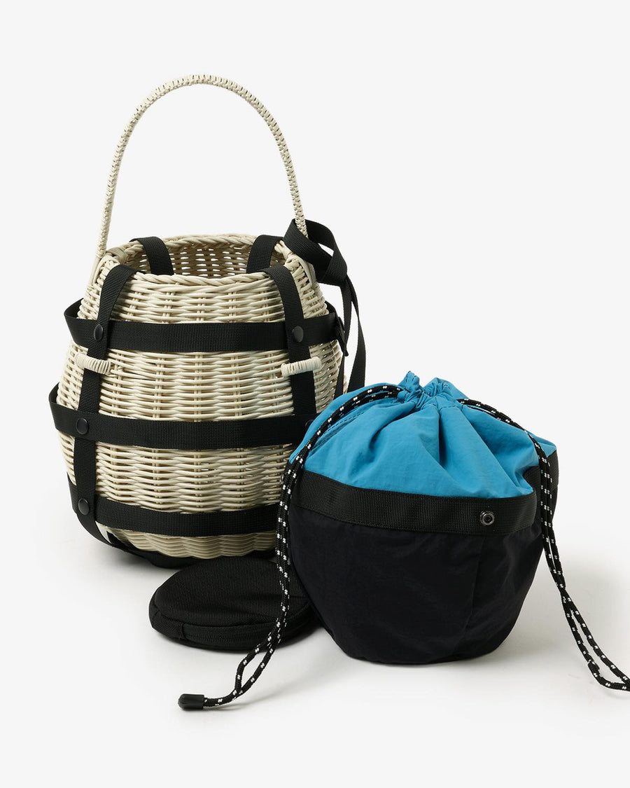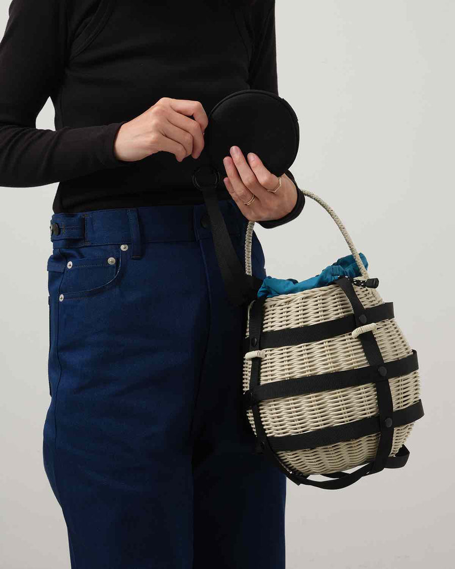 ラタン素材の本体に、ポリエステル素材の内袋(ポーチ)が付き、デザイン性と実用性を兼ね備えています。