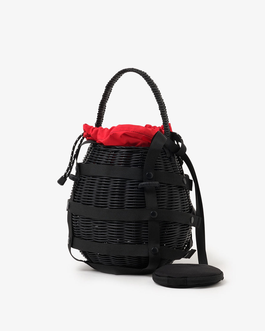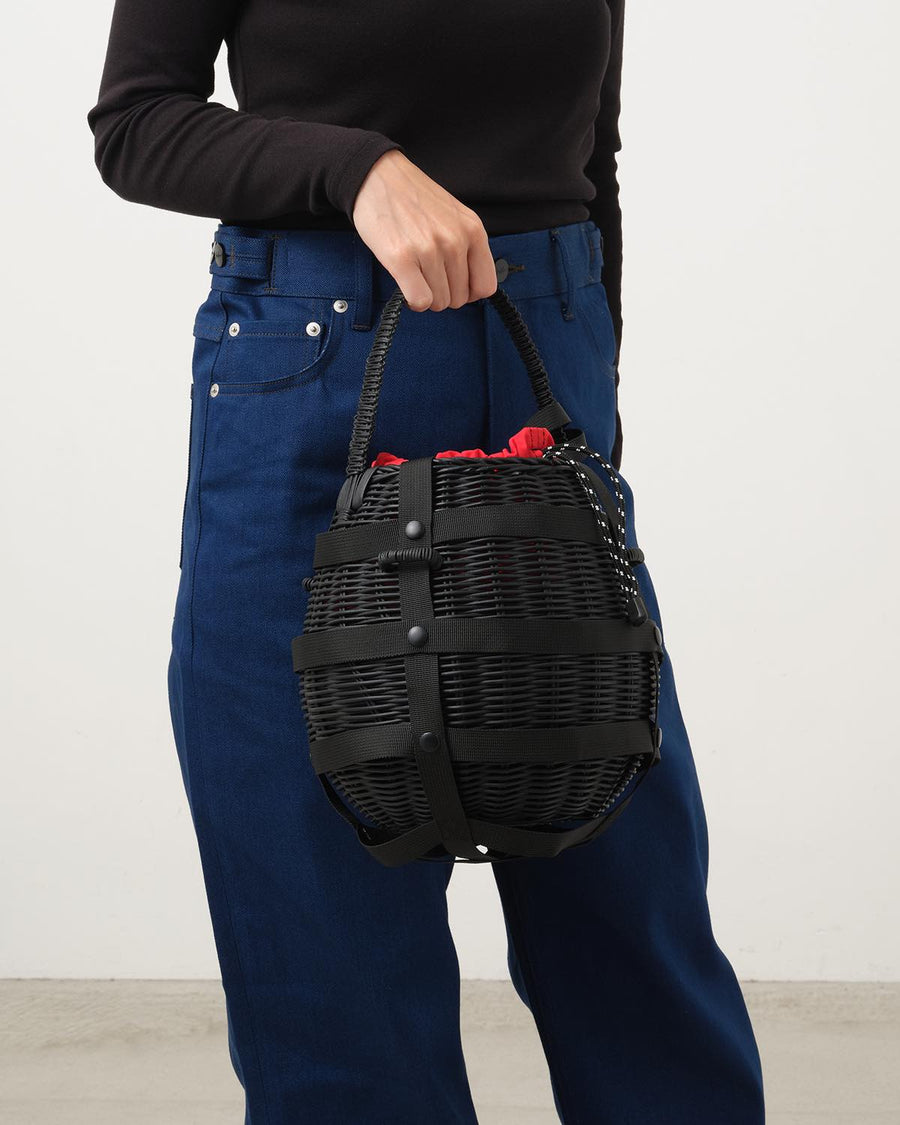 個性的なシルエットと異素材の組み合わせが魅力のバスケットバッグです。