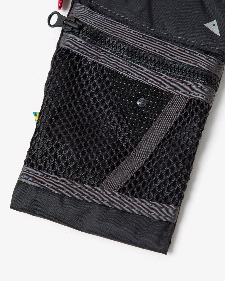 クイックに取り出せるベルクロ開閉のトップに加え、フロントに鍵などの収納に最適なメッシュポケットを備えています。〈Klättermusen〉のパックは全製品にリサイクルポリアミドを使用した100%リサイクルプロダクツです。