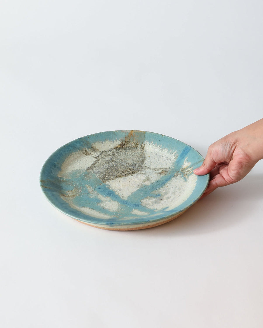 さまざまな土や釉薬が織りなす、独特な色合いで冬の空気感や情景を表現した「大皿 - 海の花」です。