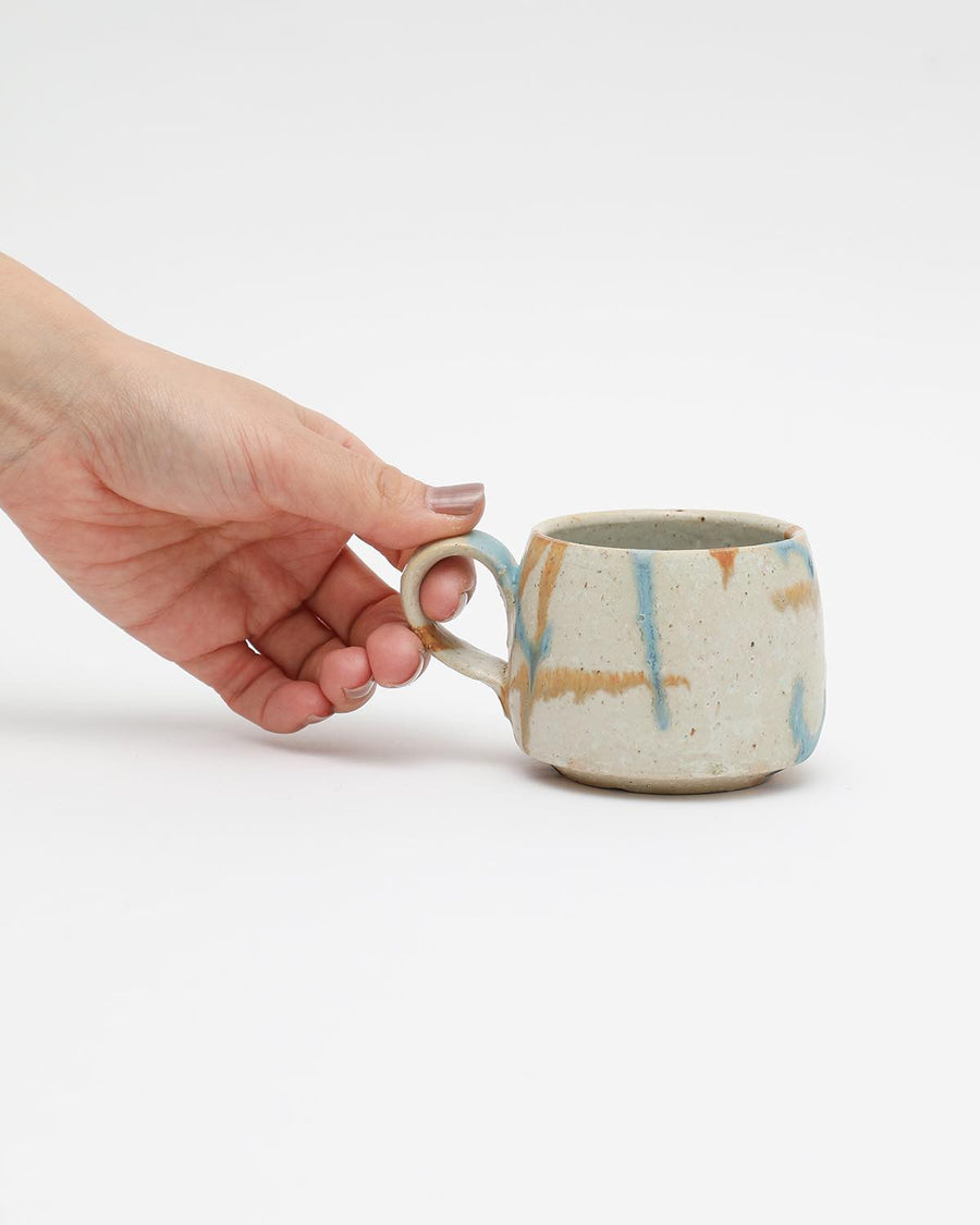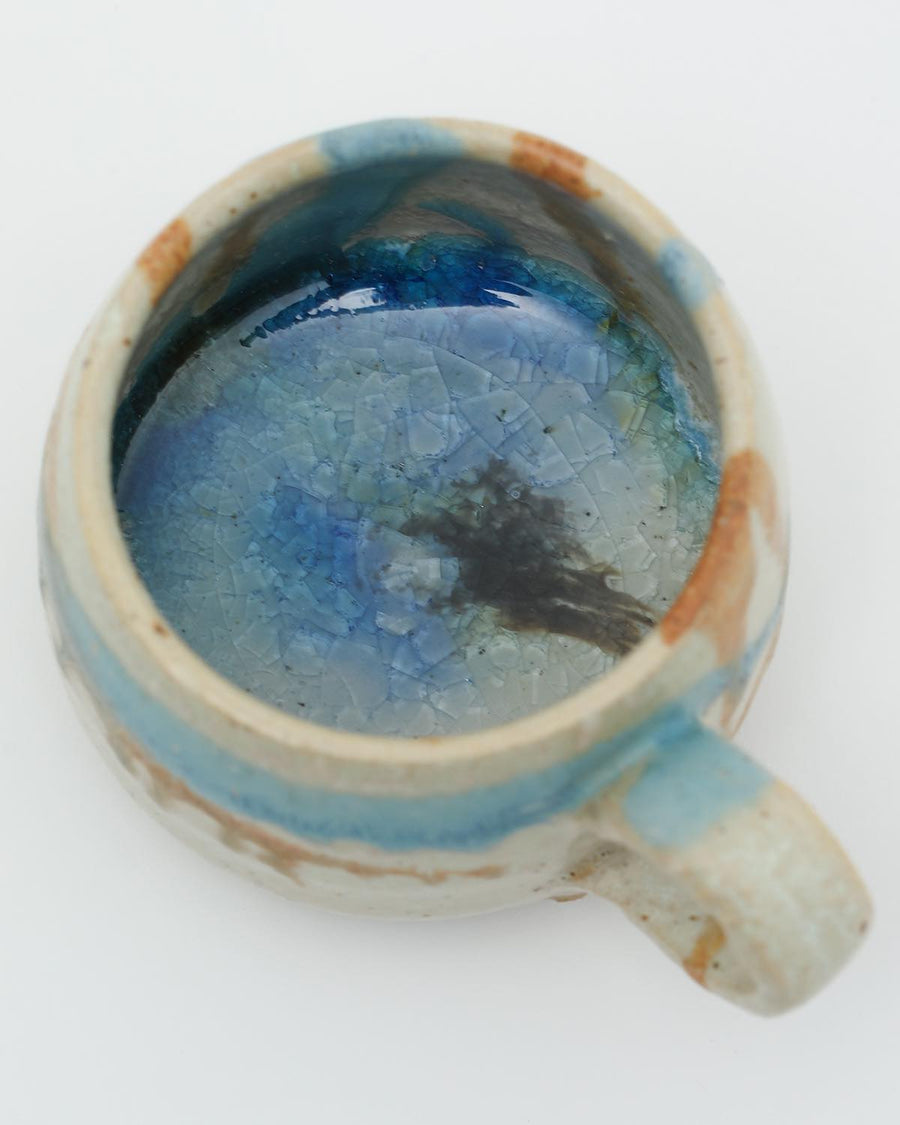 釉薬の景色を楽しむ”釉景(ゆうけい)”シリーズより「ほしのみずうみマグ - ⾙と海」です。