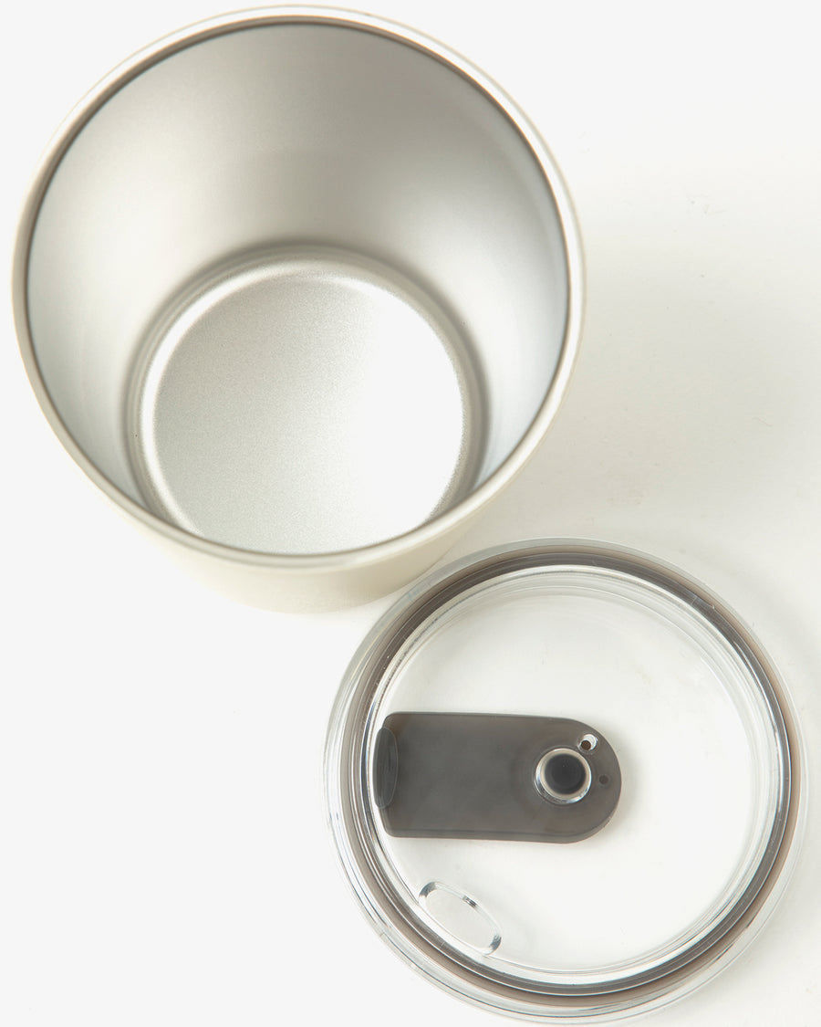 また、タンブラーに段差やネジがなく、縁が薄く口当たりが良いので蓋を外してもご使用いただけます。
