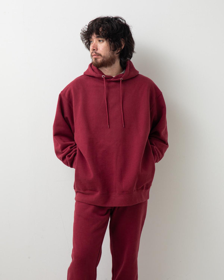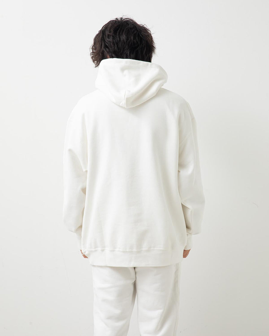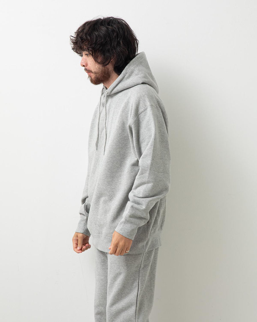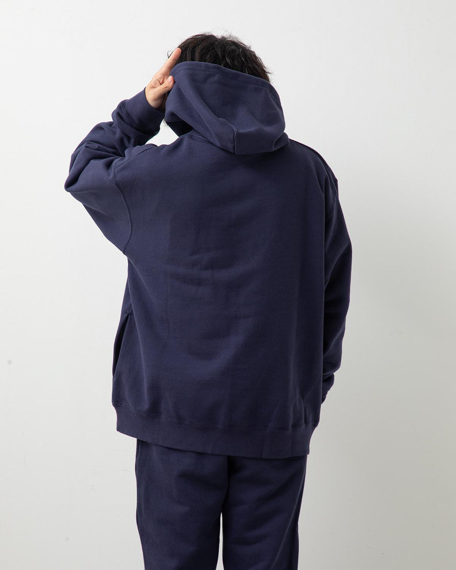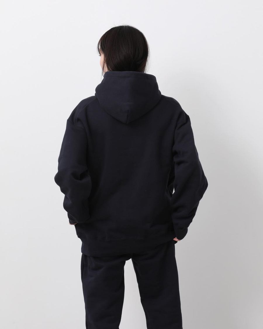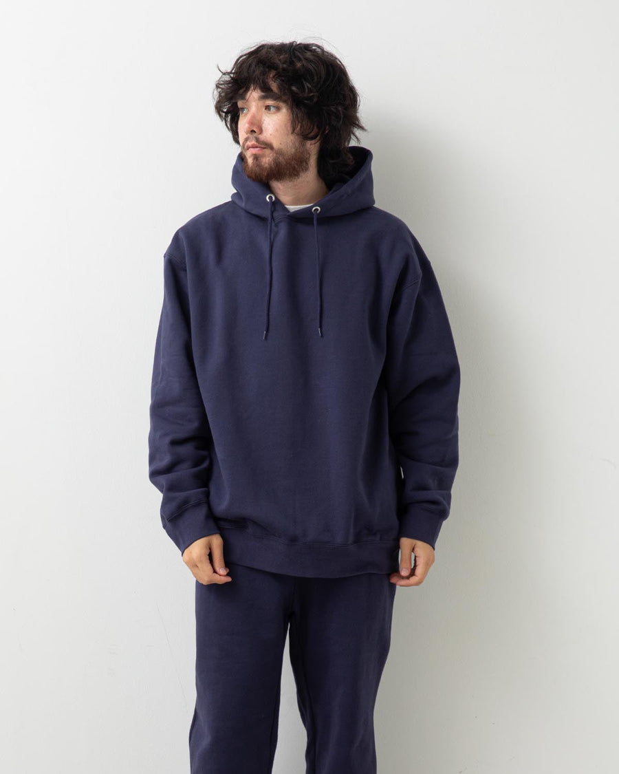 裏毛では珍しい表糸と繋ぎ糸には26番手の端番手で編むことによりヴィンテージのような風合いに仕上げた、17.6オンスのオリジナルヘビー裏毛パーカーです。