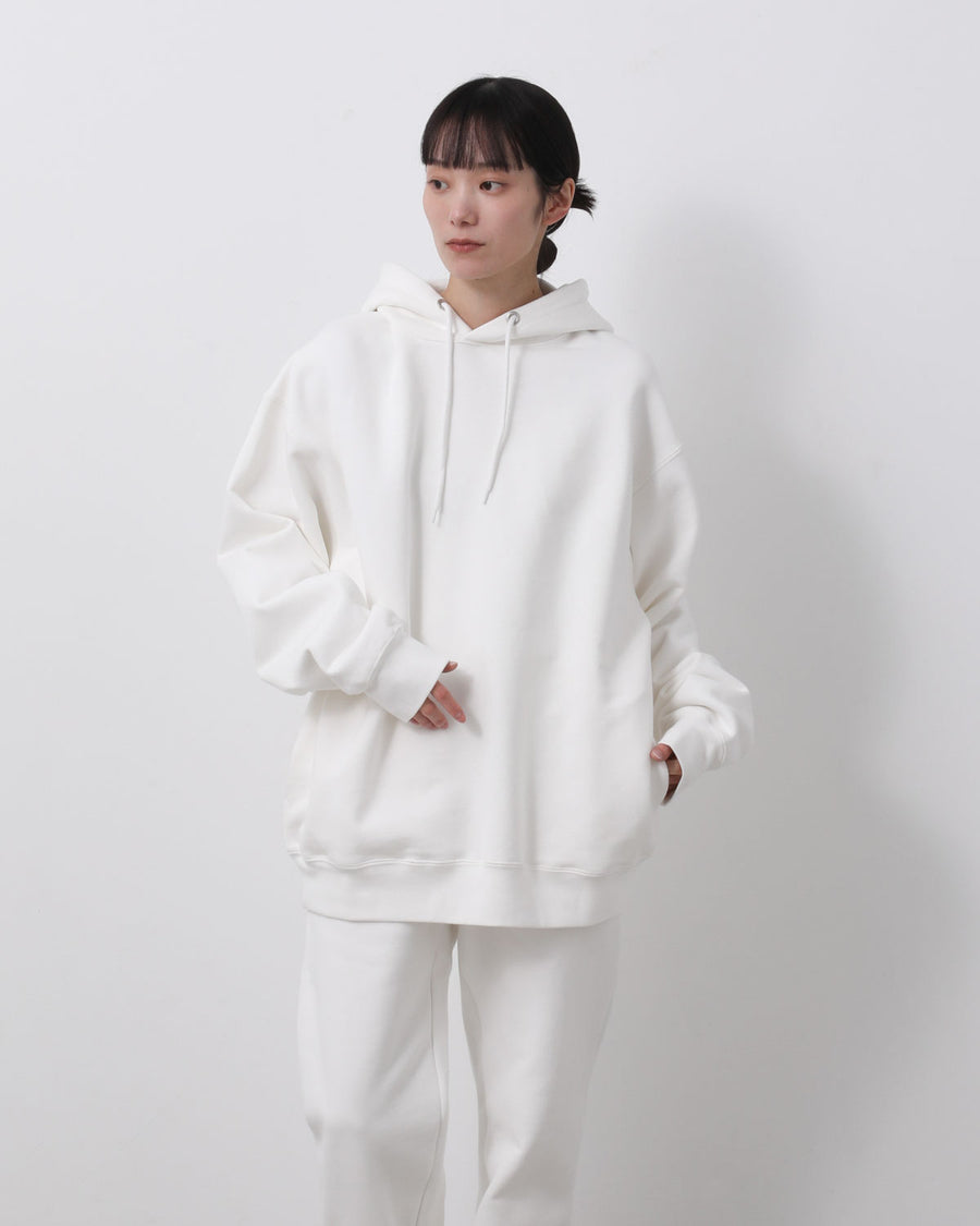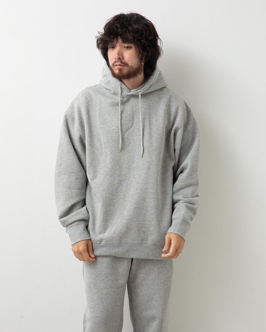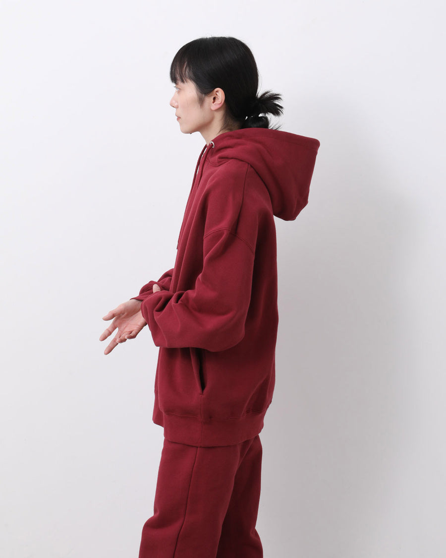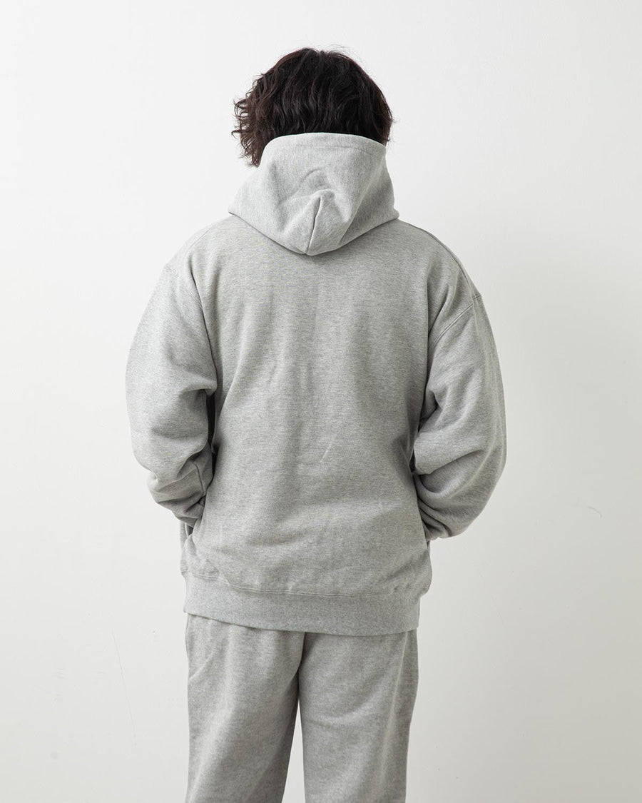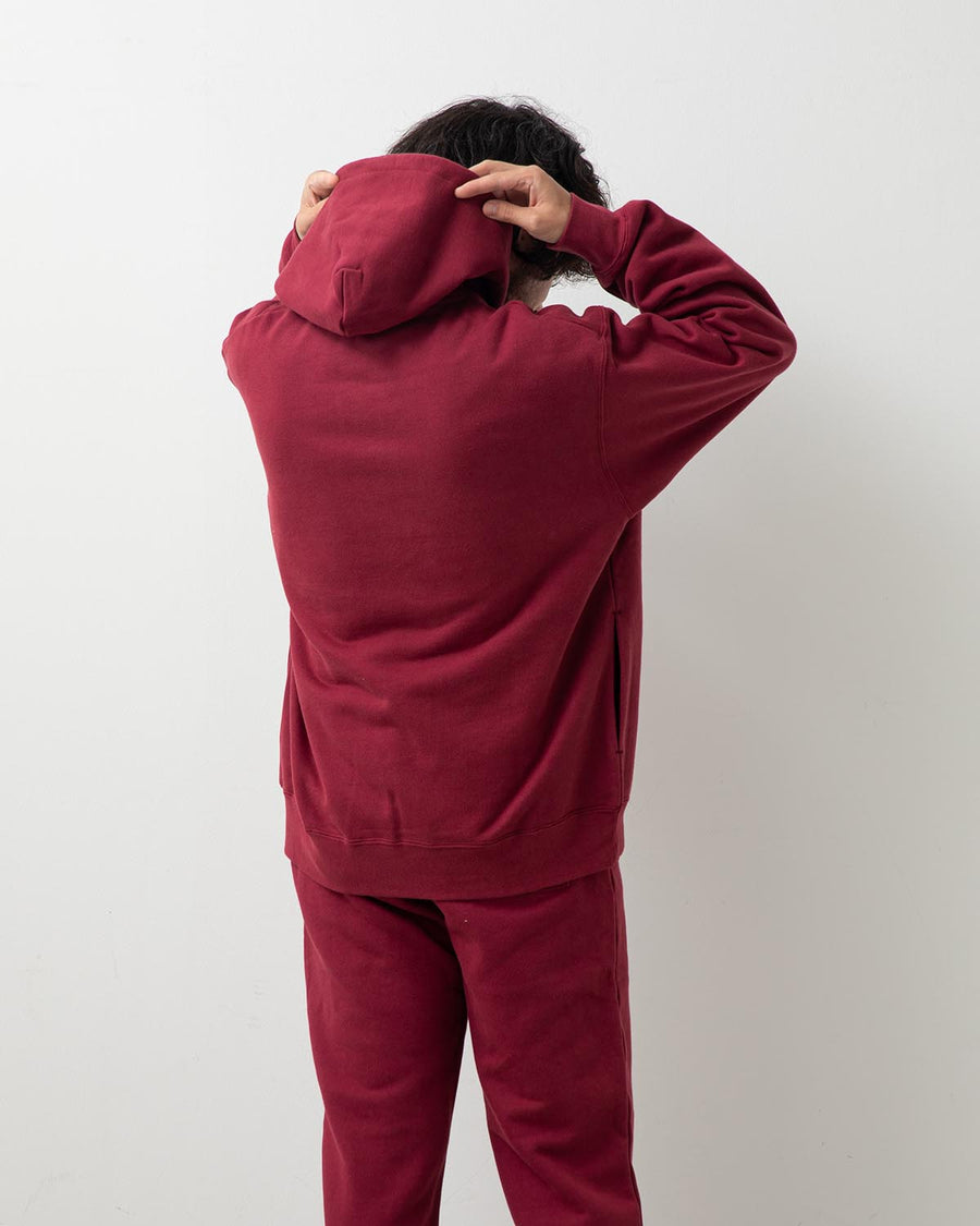 裏毛では珍しい表糸と繋ぎ糸には26番手の端番手で編むことによりヴィンテージのような風合いに仕上げた、17.6オンスのオリジナルヘビー裏毛パーカーです。