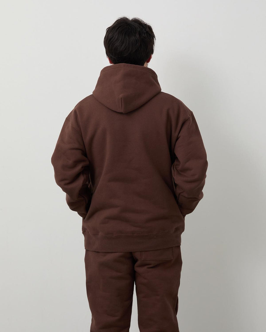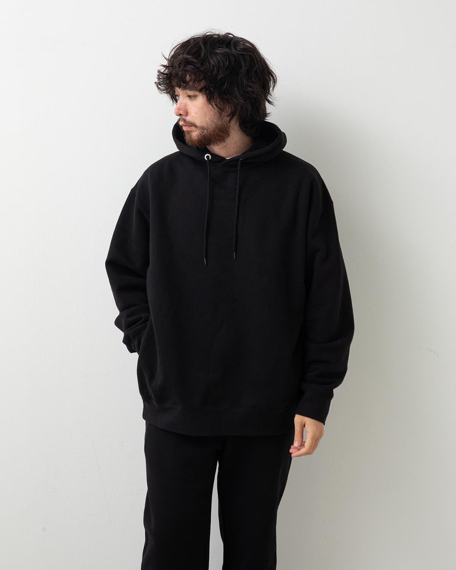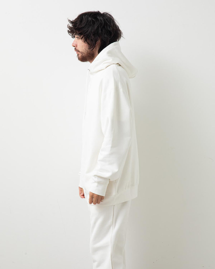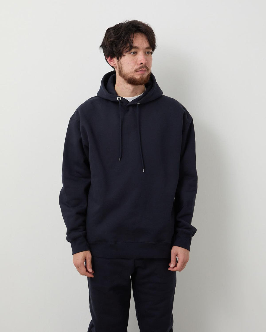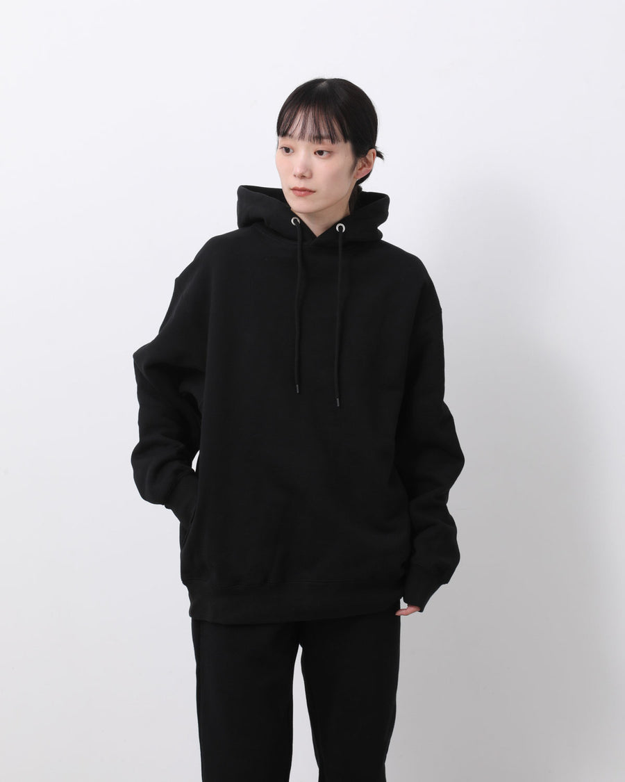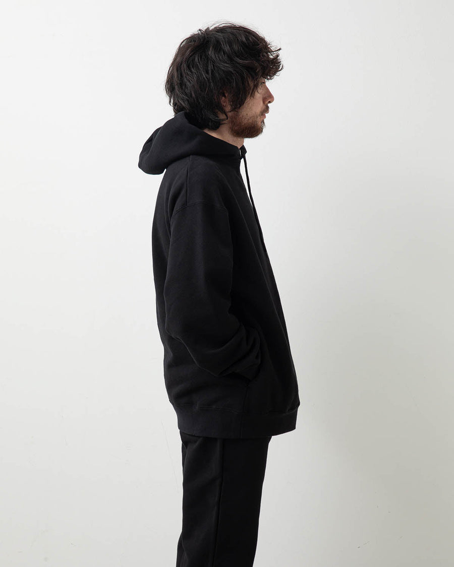 裏毛では珍しい表糸と繋ぎ糸には26番手の端番手で編むことによりヴィンテージのような風合いに仕上げた、17.6オンスのオリジナルヘビー裏毛パーカーです。