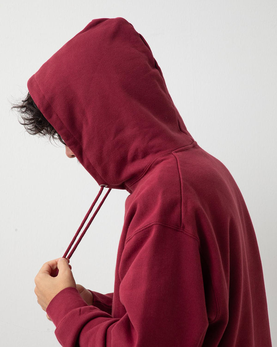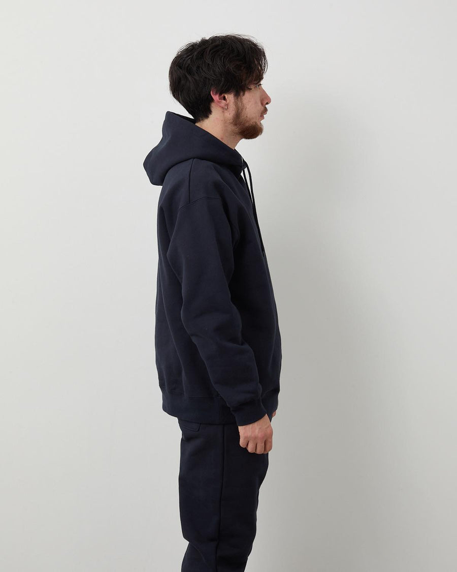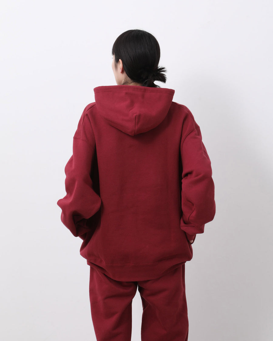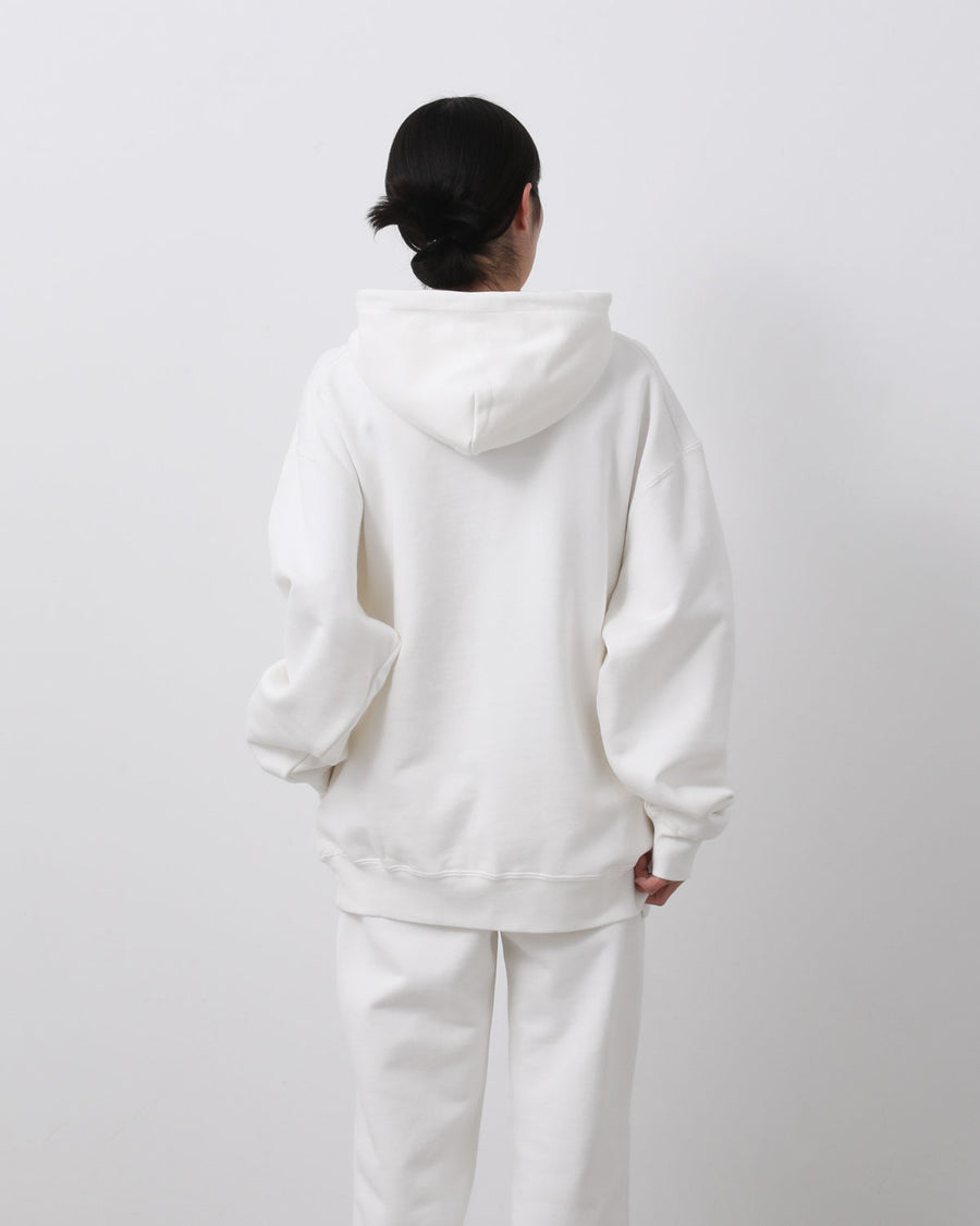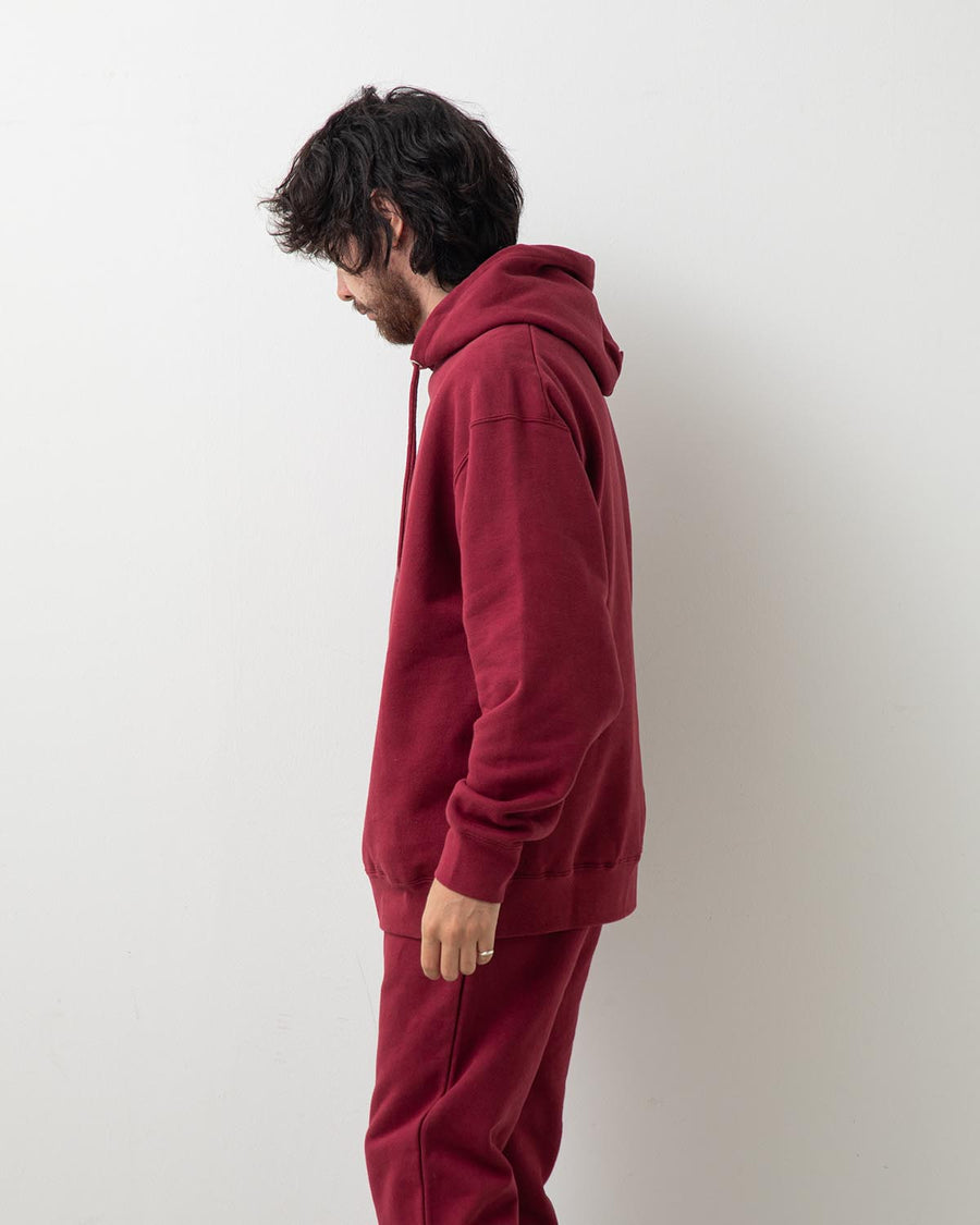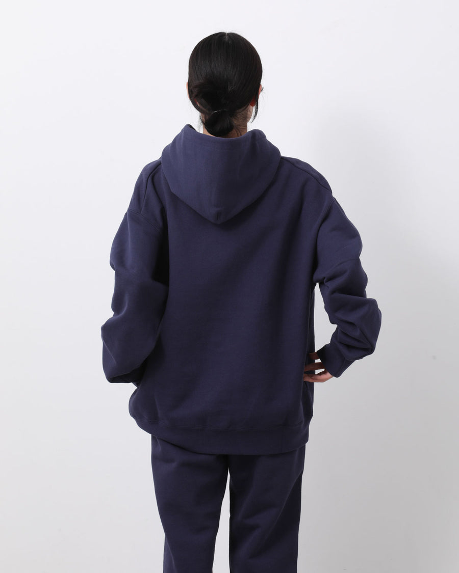 裏毛では珍しい表糸と繋ぎ糸には26番手の端番手で編むことによりヴィンテージのような風合いに仕上げた、17.6オンスのオリジナルヘビー裏毛パーカーです。