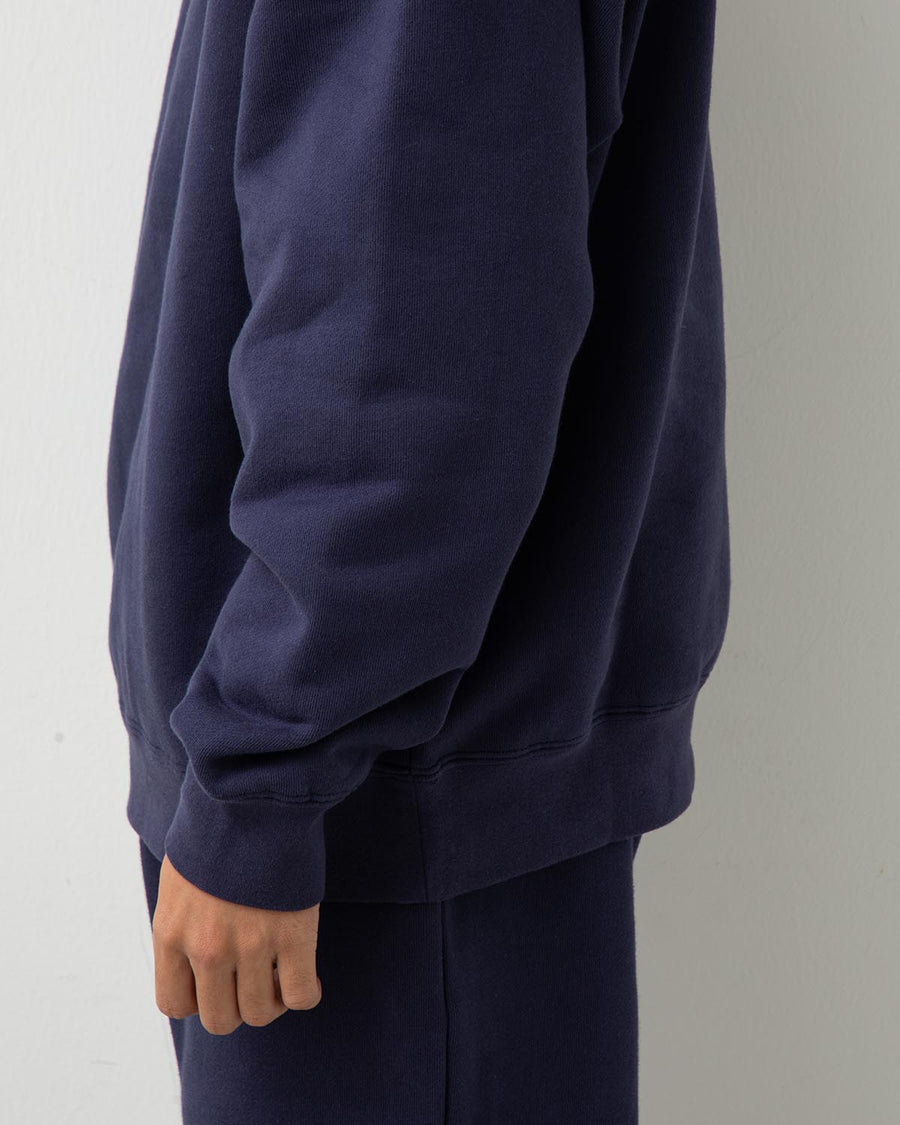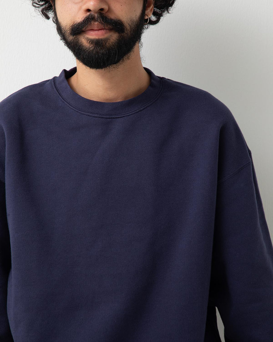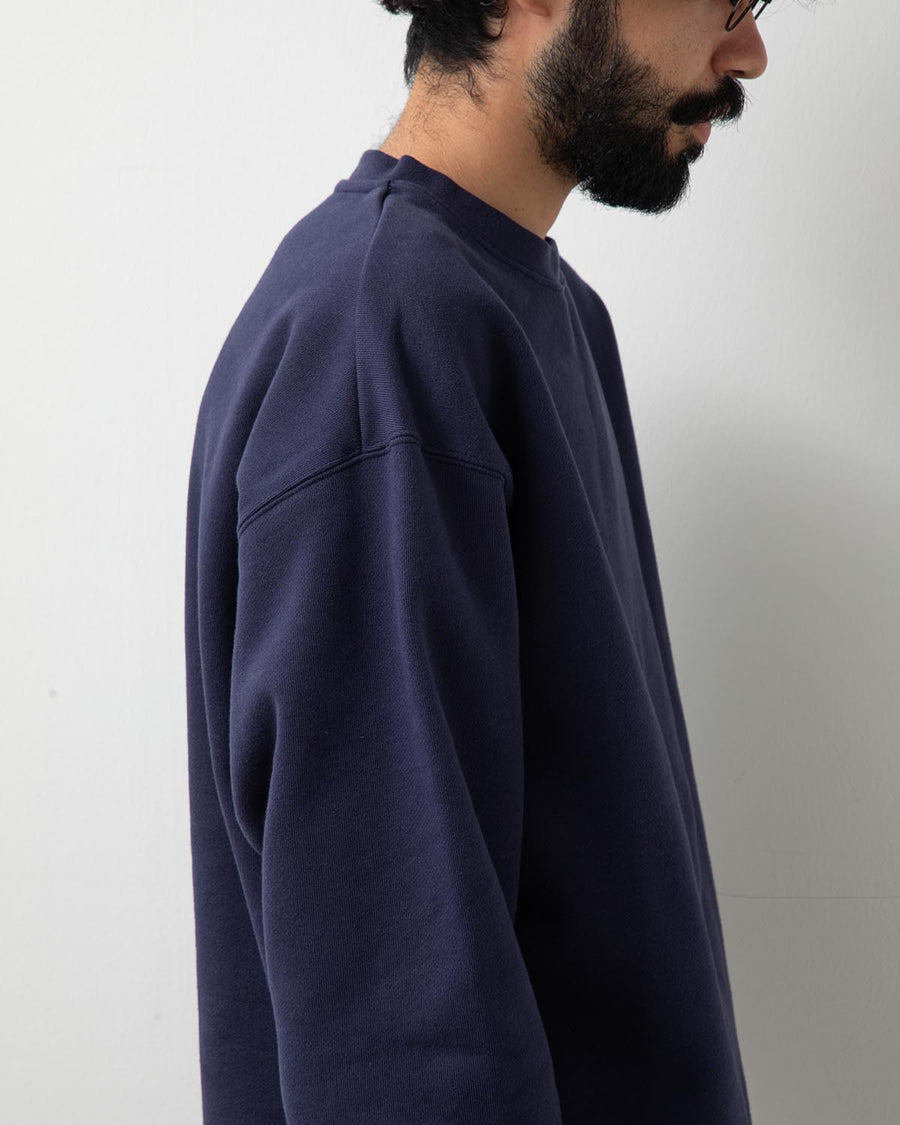 裏毛では珍しい表糸と繋ぎ糸には26番手の端番手で編むことによりヴィンテージのような風合いに仕上げた、17.6オンスのオリジナルヘビー裏毛スウェットです。
