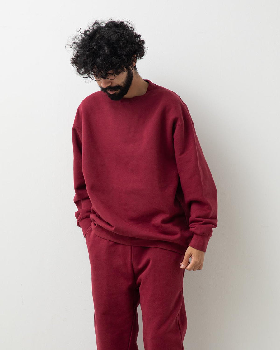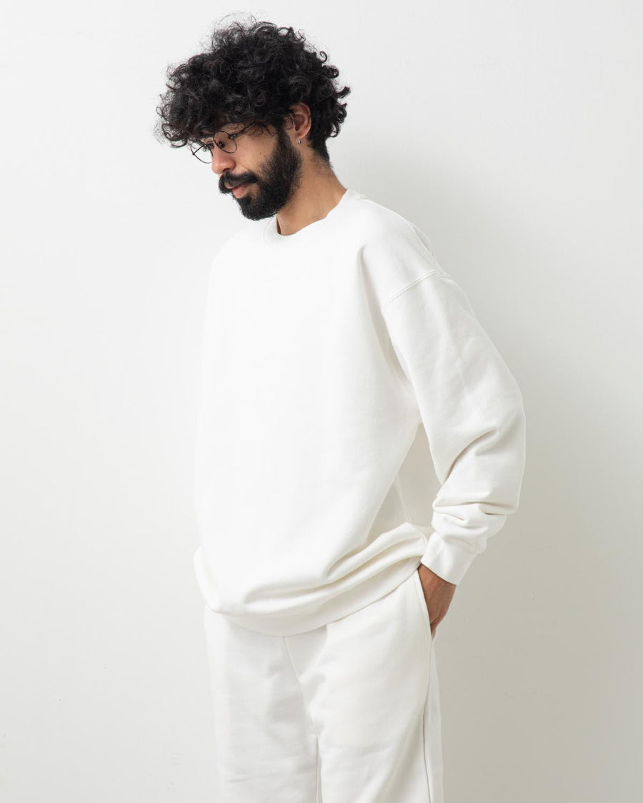 裏毛では珍しい表糸と繋ぎ糸には26番手の端番手で編むことによりヴィンテージのような風合いに仕上げた、17.6オンスのオリジナルヘビー裏毛スウェットです。