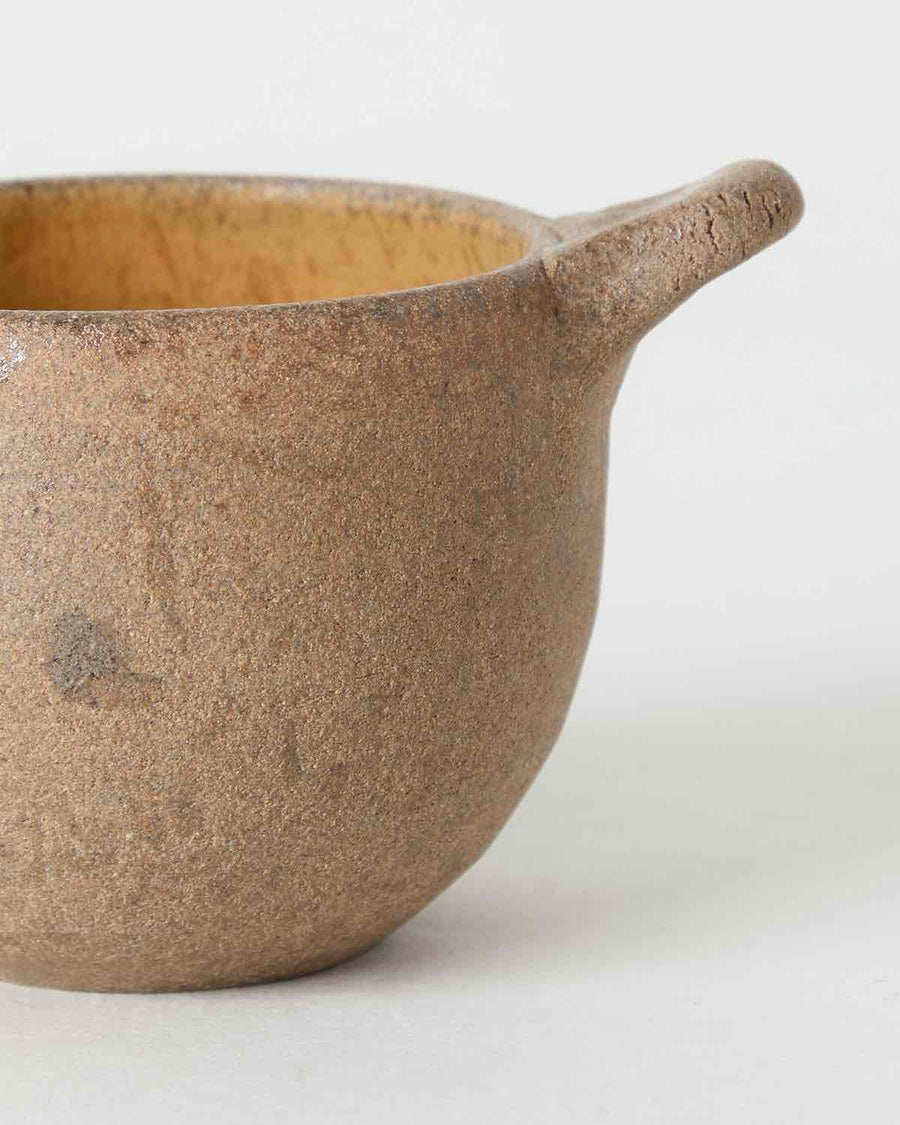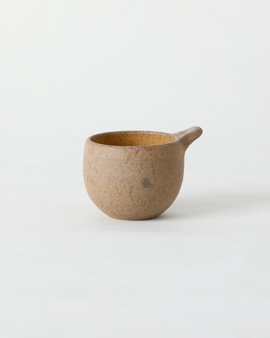 小鉢やお子様の取り分け皿としてもお使いいただけるミニポットです。 コロンと丸みのある独特なフォルムに加え、控えめについた取手と柔らかなカラーリングが特徴です。