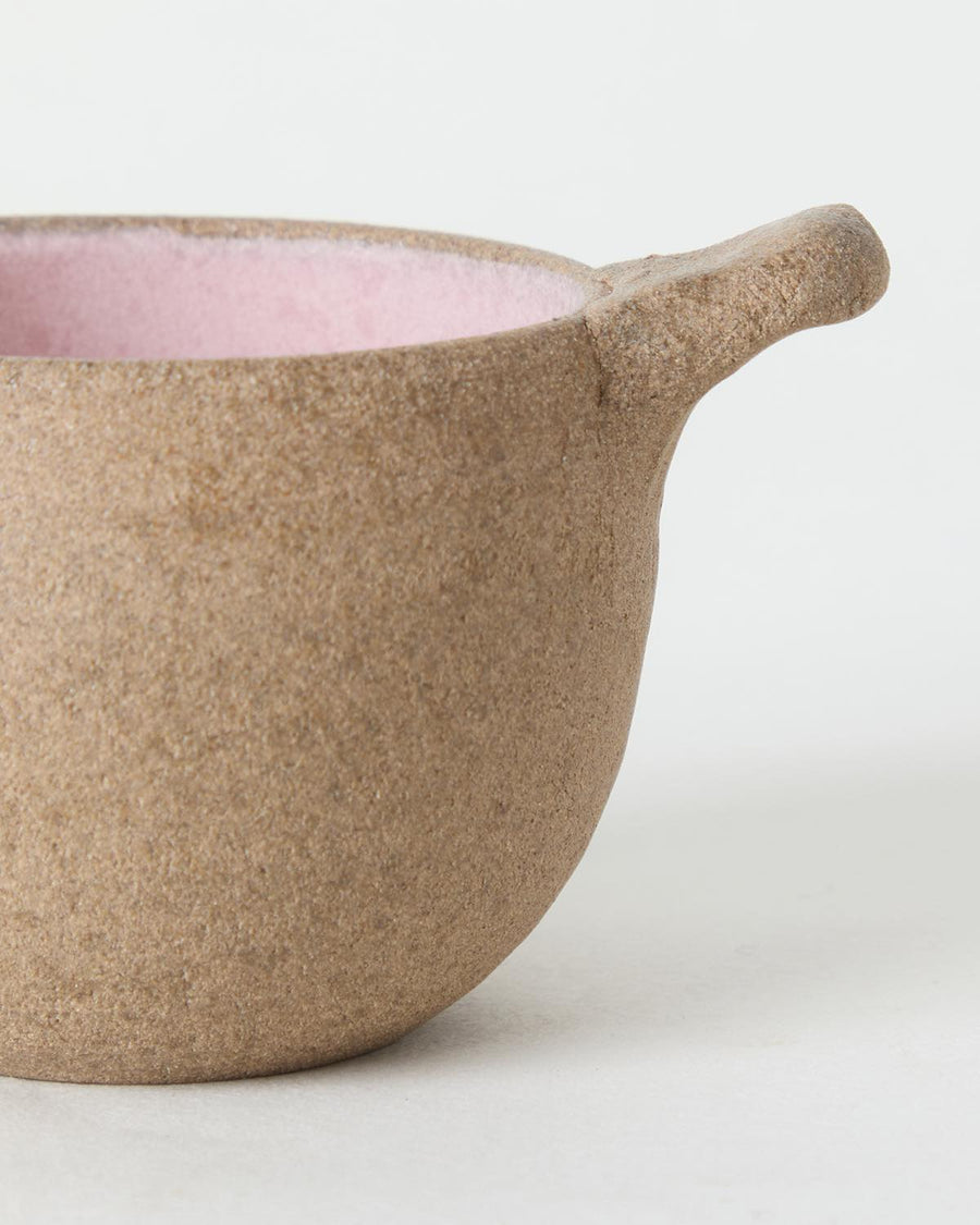 小鉢やお子様の取り分け皿としてもお使いいただけるミニポットです。 コロンと丸みのある独特なフォルムに加え、控えめについた取手と柔らかなカラーリングが特徴です。