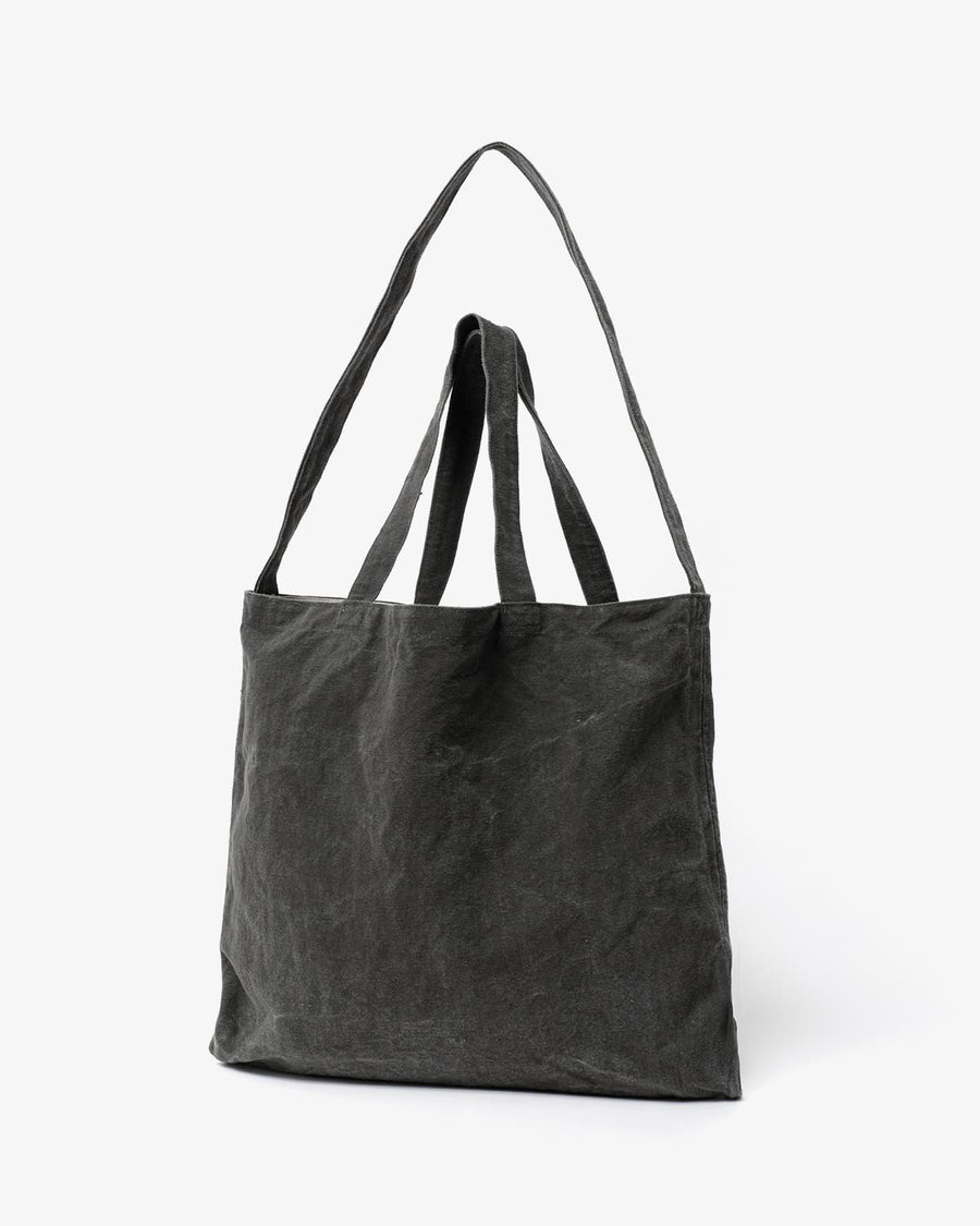 タテ糸にコットン、ヨコ糸にヘンプの太番手を使用し高密度に織り上げたヘビーオックスフォード素材のマーケットバッグです。