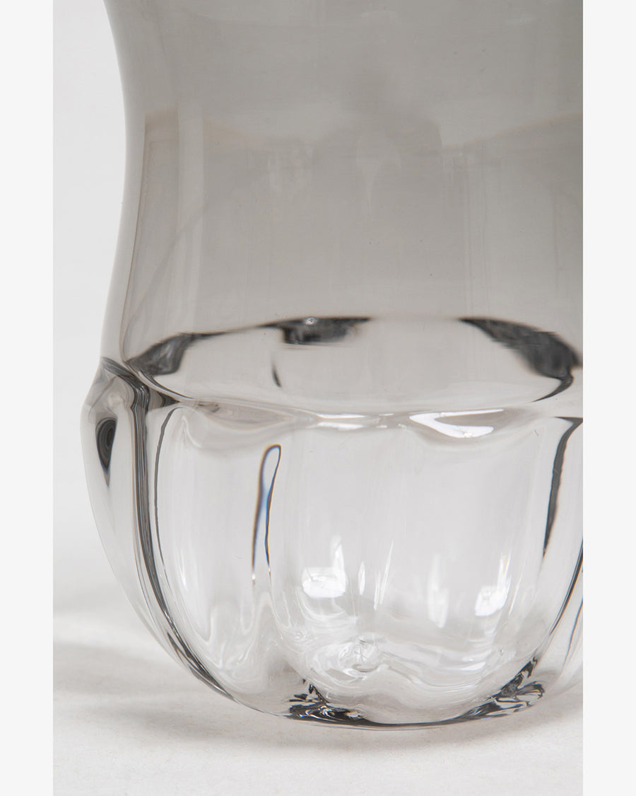 1974年東京生まれ。2002年に茨城県に工房を構え、再生ガラス(ソーダガラス)を用いた吹きガラスによる器を制作しています。「普段使いのガラス」をテーマとし、手作業によって生まれる有機的で柔らかなフォルムが生活の中で自然に溶け込みます。