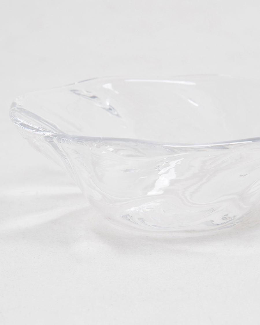 1974年東京生まれ。2002年に茨城県に工房を構え、再生ガラス(ソーダガラス)を用いた吹きガラスによる器を制作しています。「普段使いのガラス」をテーマとし、手作業によって生まれる有機的で柔らかなフォルムが生活の中で自然に溶け込みます。
