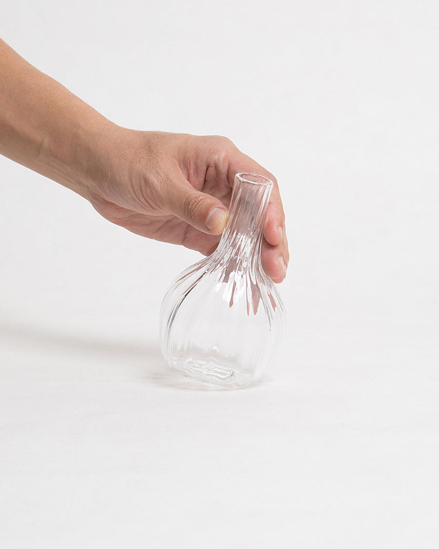 手作業の温もりを感じるコロンとした丸みのある「ミニ花器モール クリア A」です。