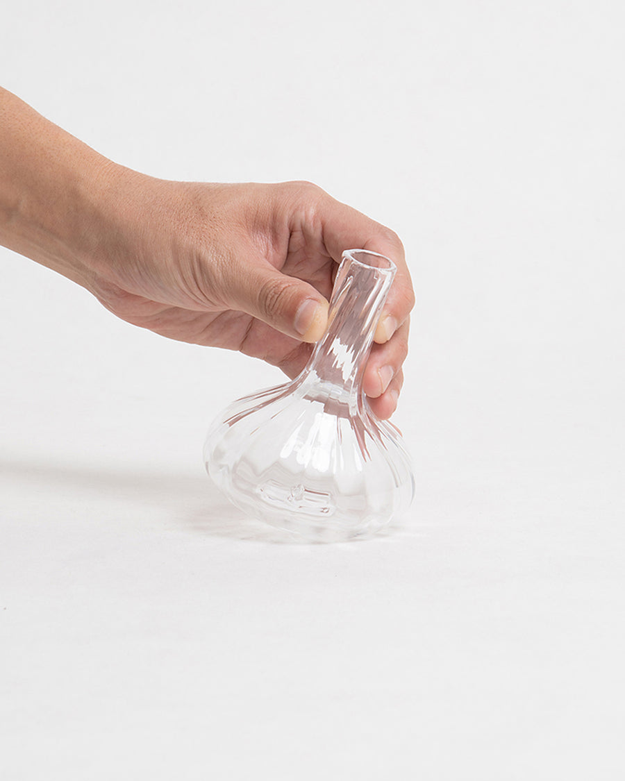 手作業の温もりを感じるコロンとした丸みのある「ミニ花器モール クリア B」です。