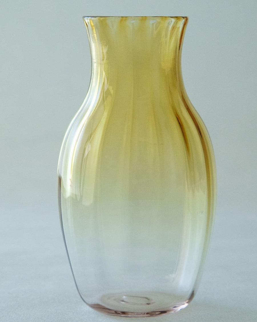 1974年東京生まれ。2002年に茨城県に工房を構え、再生ガラス(ソーダガラス)を用いた吹きガラスによる器を制作しています。「普段使いのガラス」をテーマとし、手作業によって生まれる有機的で柔らかなフォルムが生活の中で自然に溶け込みます。