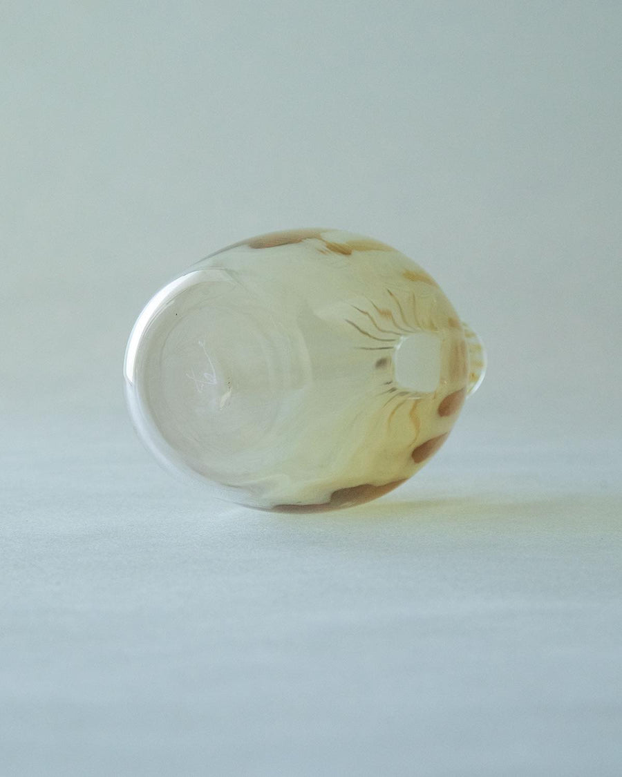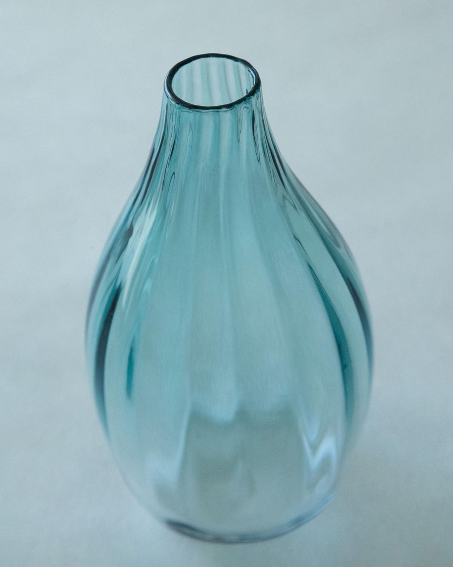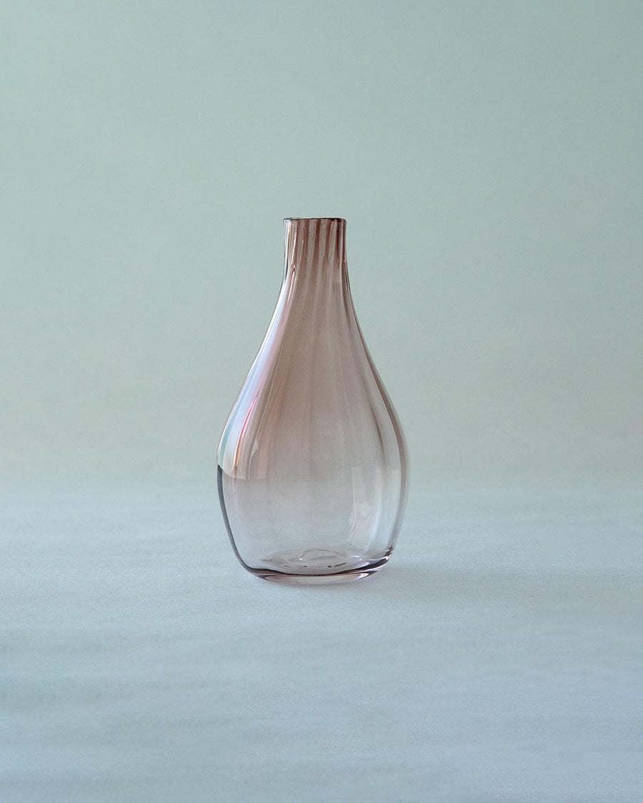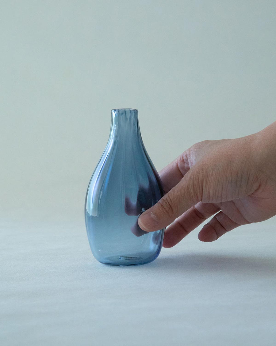 1974年東京生まれ。2002年に茨城県に工房を構え、再生ガラス(ソーダガラス)を用いた吹きガラスによる器を制作しています。「普段使いのガラス」をテーマとし、手作業によって生まれる有機的で柔らかなフォルムが生活の中で自然に溶け込みます。