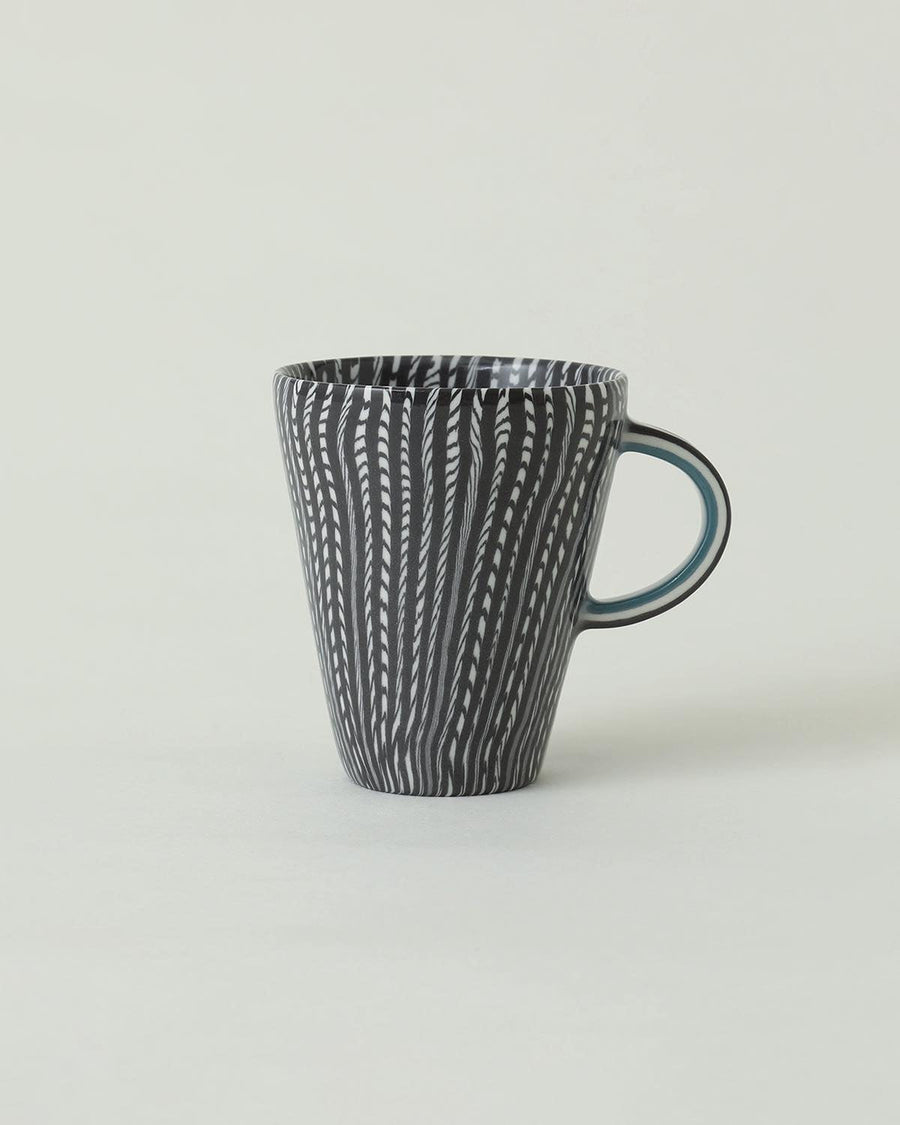 顔料を練りこんだ粘土を使用し柄を作る“練り上げ“と呼ばれる技法を用いて制作された「マグ - ⽩樺」です。