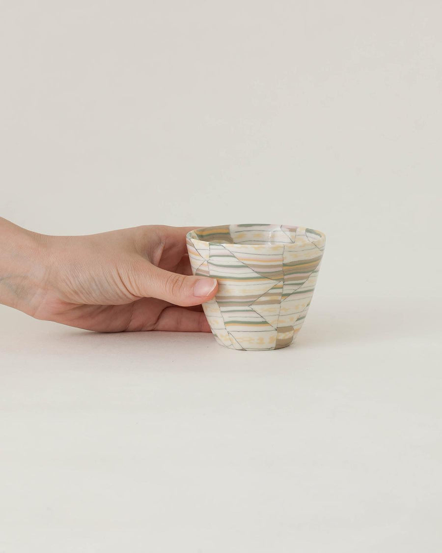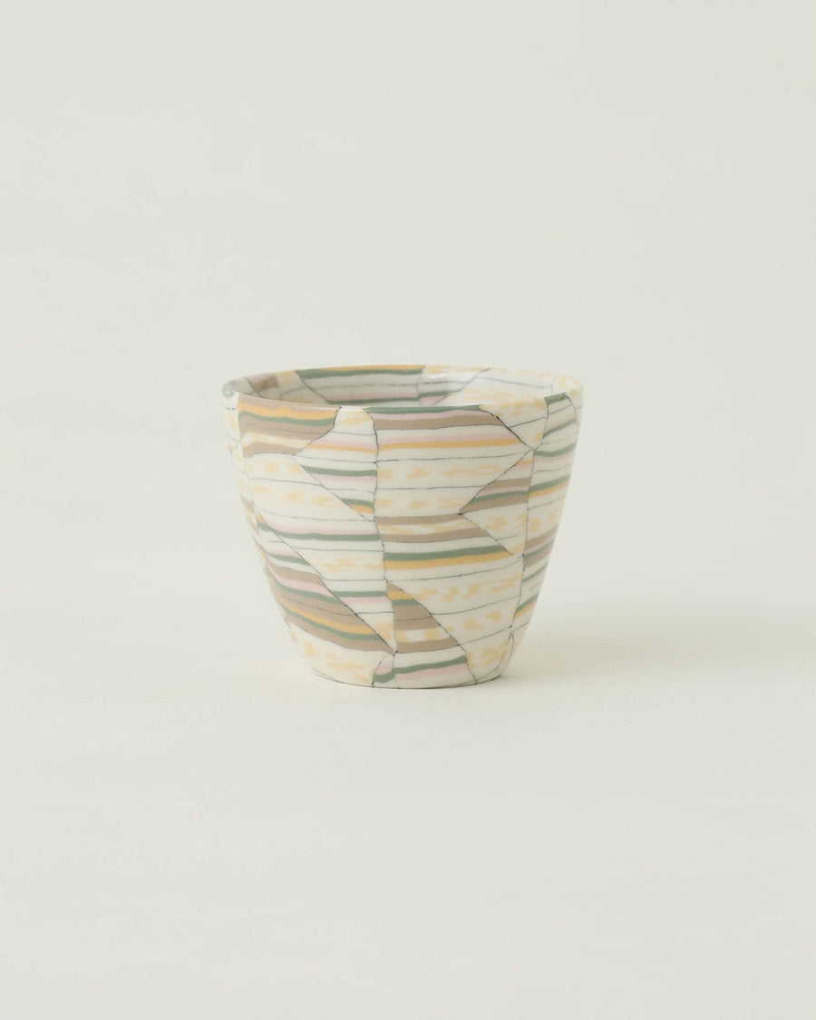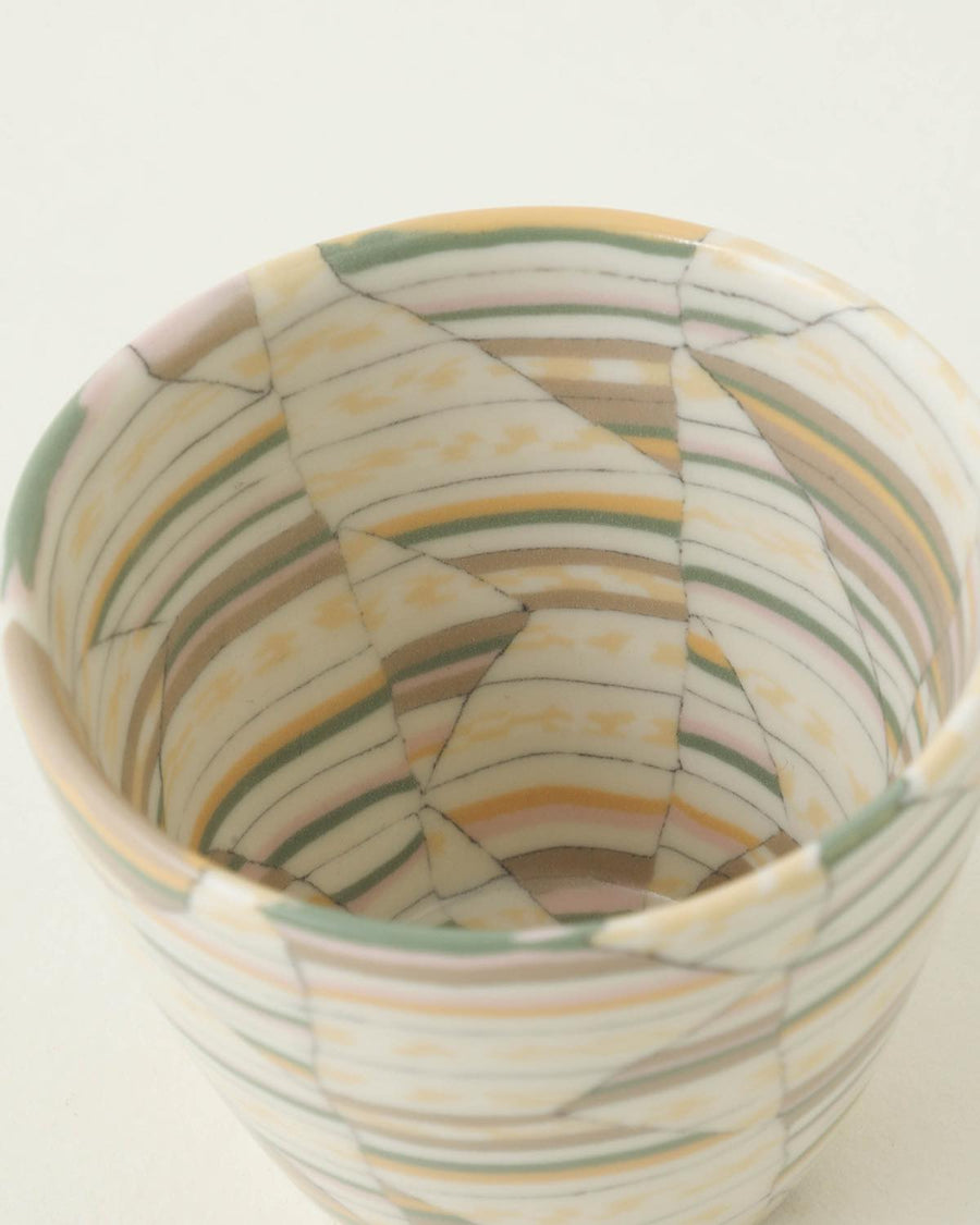 顔料を練りこんだ粘土を使用し柄を作る“練り上げ“と呼ばれる技法を用いて制作された「カップ - ピクニック」です。