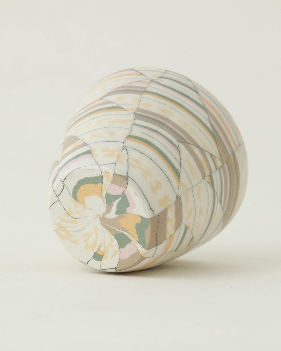 熊本県出身、2001年より〈ハラダマホ〉名義で作家活動をスタート。白土に顔料を練り込んだ粘土を数種類組み合わせて柄を作る“練り上げ“と呼ばれる技法を用いて、幾何学的な模様と色鮮やかな配色が特徴的な作品を数多く展開しています。