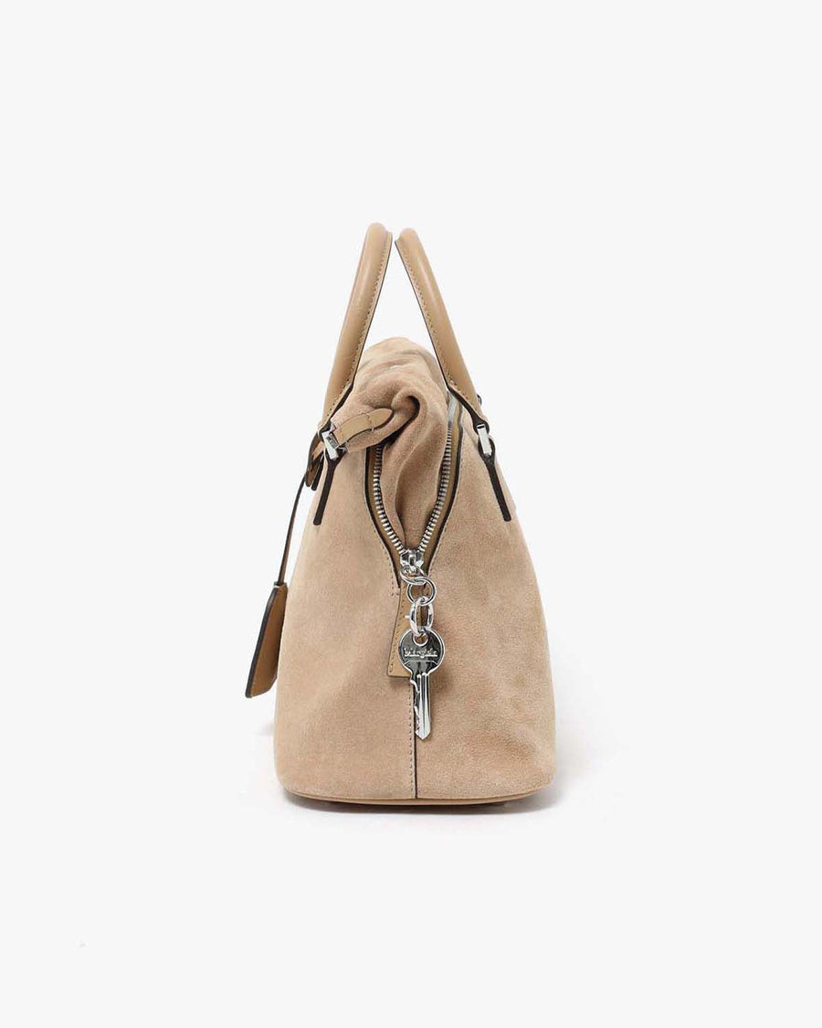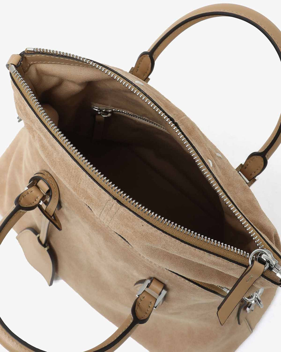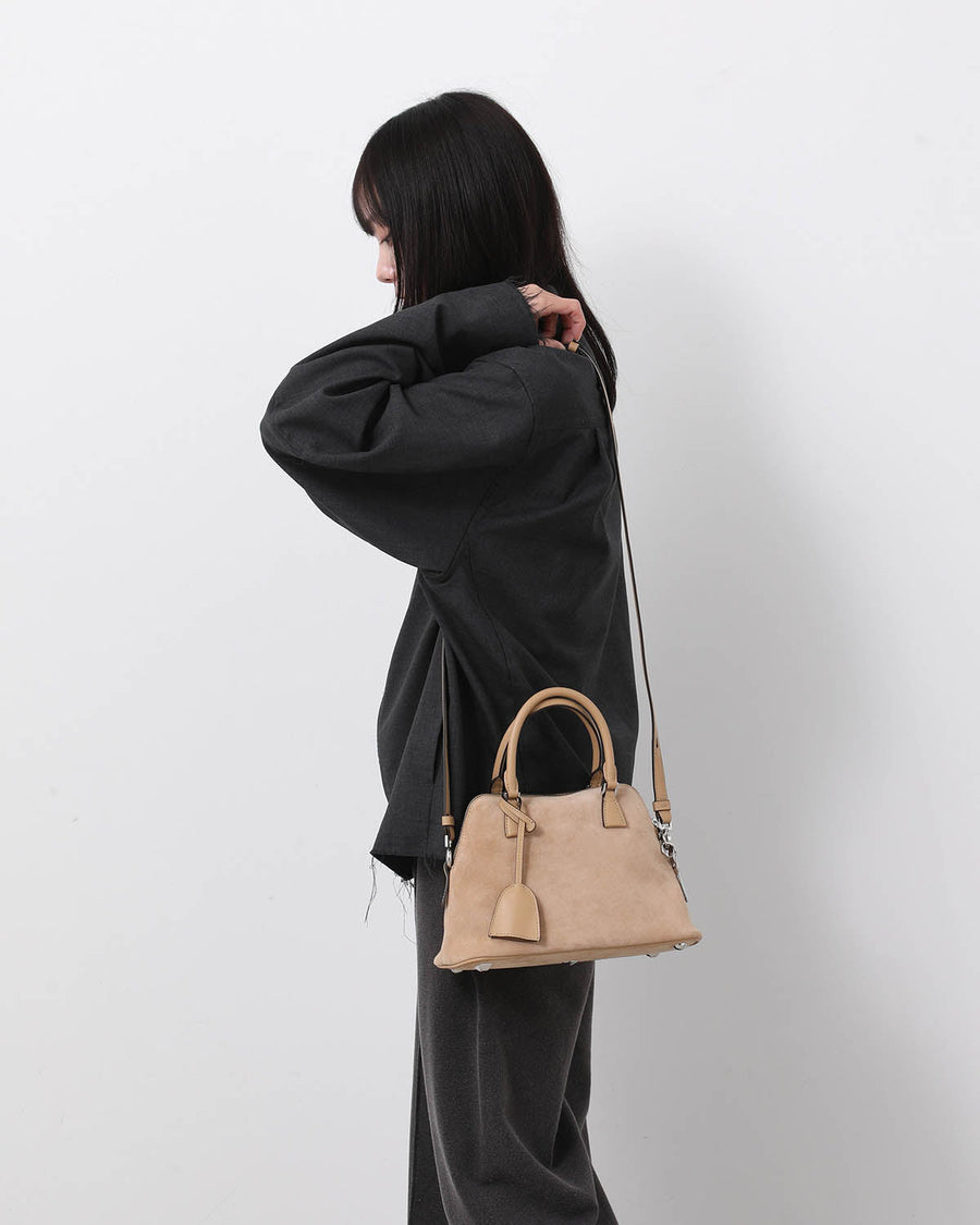 スエードレザーで仕立てられたしなやかなボディは、自然な折り重なりを描く柔らかなフォルムにより、彫刻的なラインを備えたリラックス感のあるシルエットを表現しています。