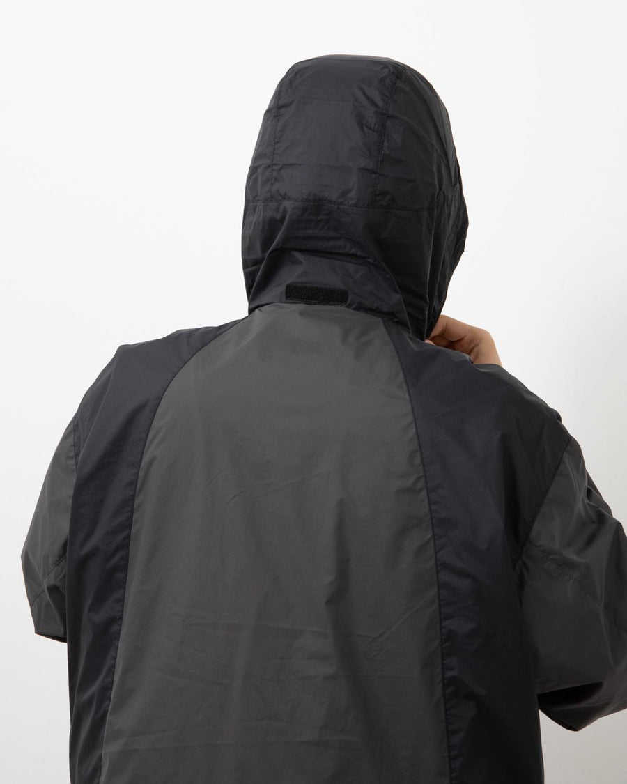 表地は耐久はっ水加工を施したナイロン、裏地は肌離れのよいポリエステルメッシュを使用したウインドブレーカーです。