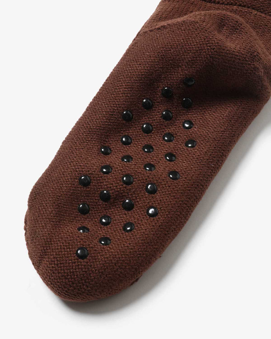 肌側にボアフリースを配し、足を暖かく保つ厚手のウィンタールームソックスです。
