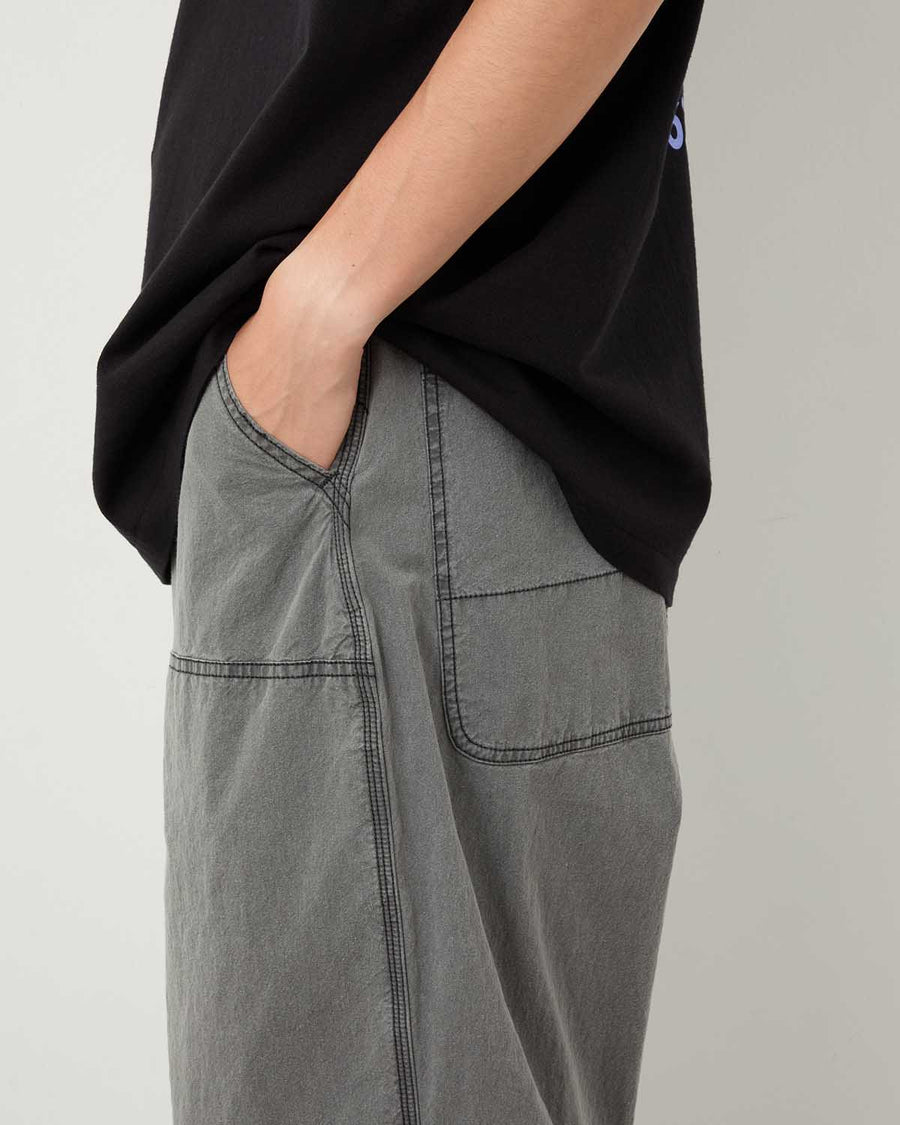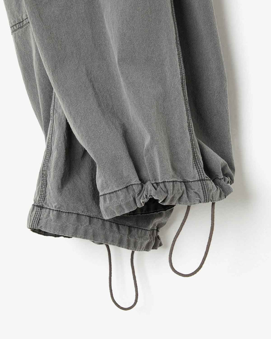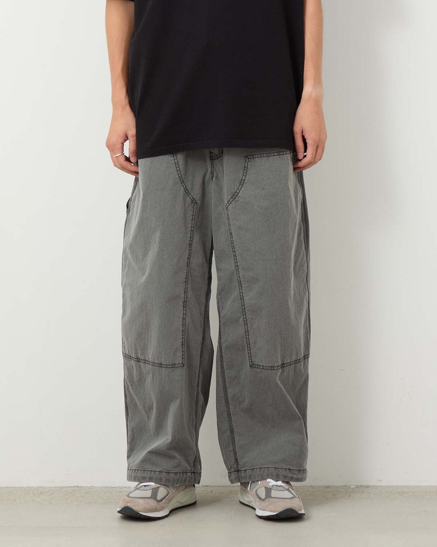トレッキングパンツなどのディテールをミックスしたデザインで、タリ広めの腰回りにゆとりをもたせ、裾にかけて狭くなるテーパードカットに仕上げています。