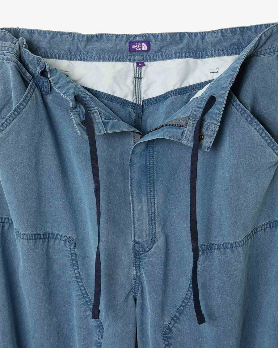 たて糸にインディゴ染めしたコットン、よこ糸にリサイクルナイロンを使用した、コットンナイロンインディゴウェザートラックパンツです。