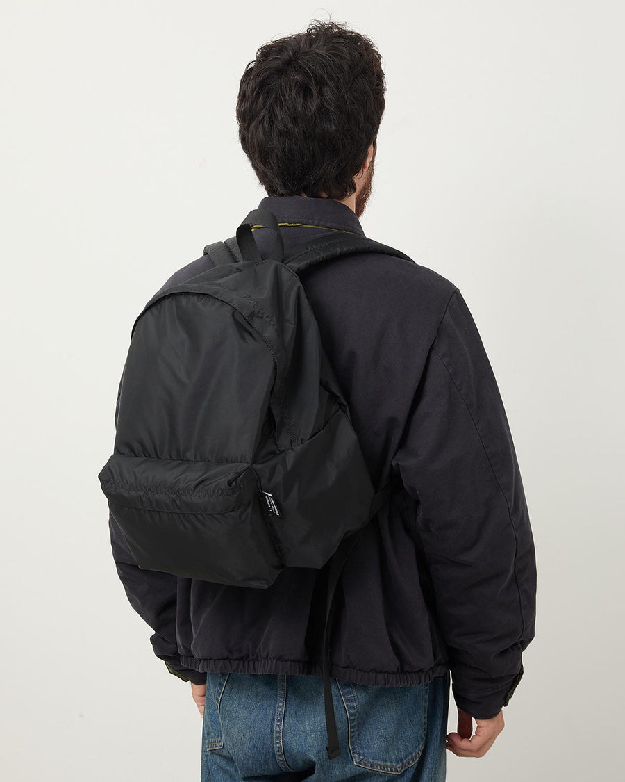 柔らかく、上品な微光沢の〈OUTDOOR PRODUCTS〉オリジナルナイロンを使用し、ヴィンテージのバックパックから着想を得て製作しました。