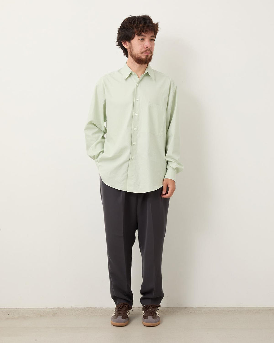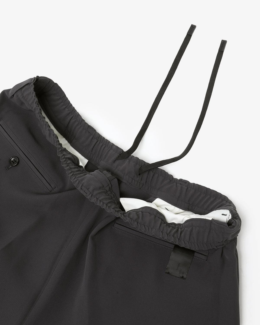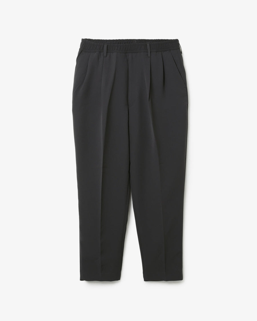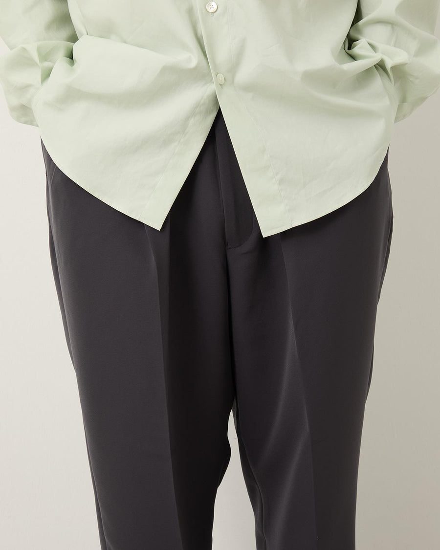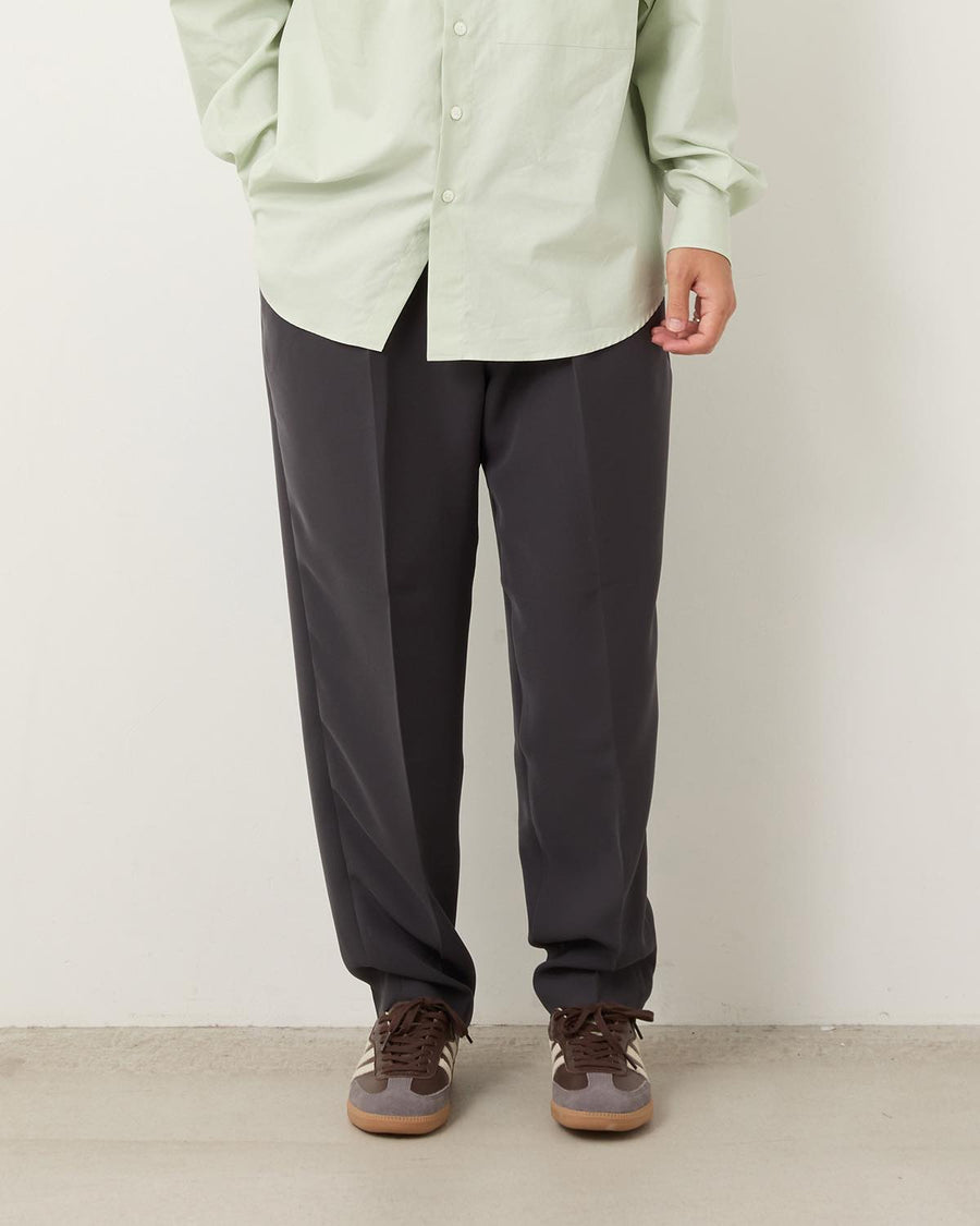 ウエストのイージー仕様や9分丈のワイドシルエットでリラックス感のあるスラックスに仕上げられています。