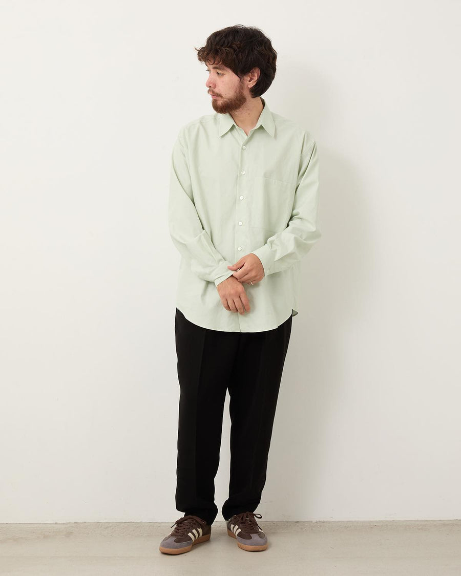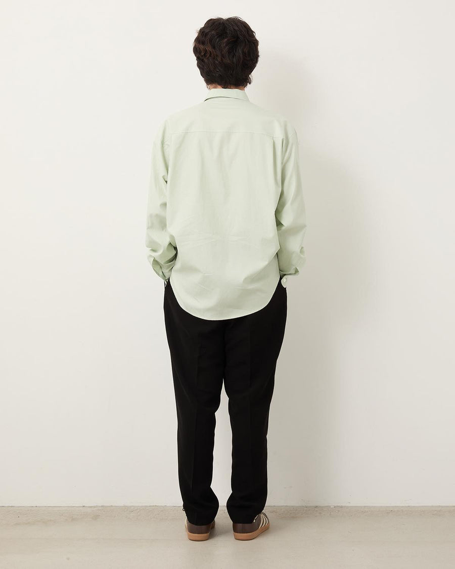 ウエストのイージー仕様や9分丈のワイドシルエットでリラックス感のあるスラックスに仕上げられています。