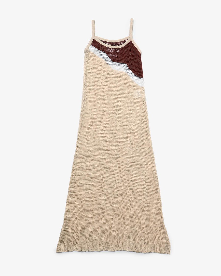 〈NÒMARHYTHM TEXTILE〉を象徴するオリジナルの柄模様を、手編みで表現したスリップドレスです。