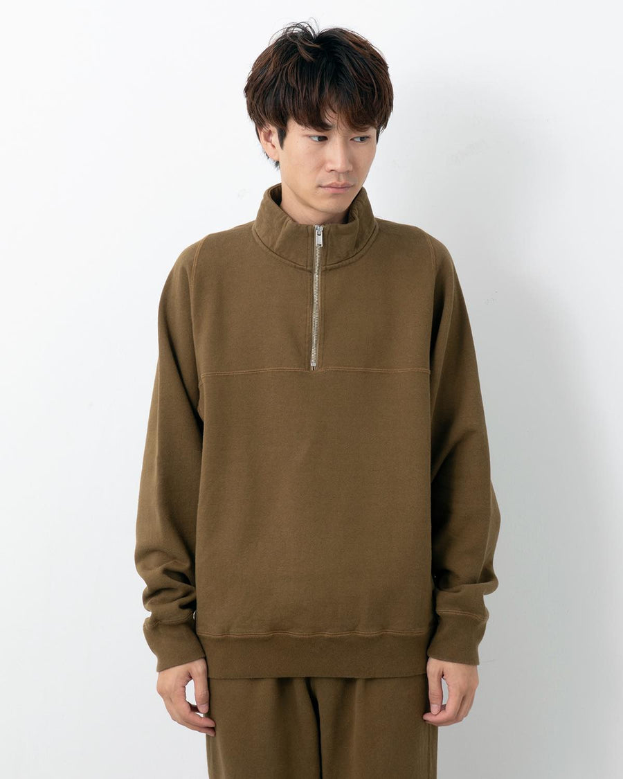 AUTUMN & WINTER 2025 COLLECTIONより、ドライな質感のコットン裏毛素材を使用したハーフジップのプルオーバースウェットです。