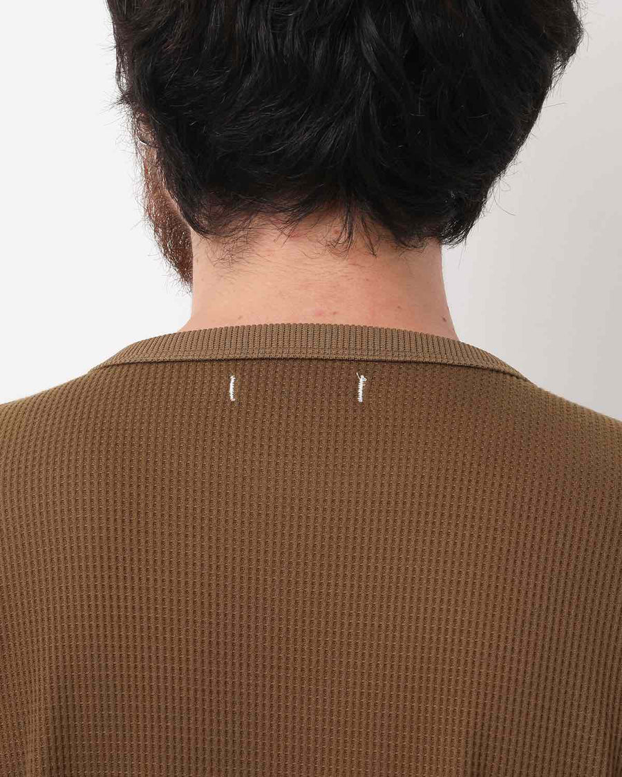 クラシックなワッフル編みの質感を持ちながら、軽量で高い保温性と柔らかな着心地が特徴です。