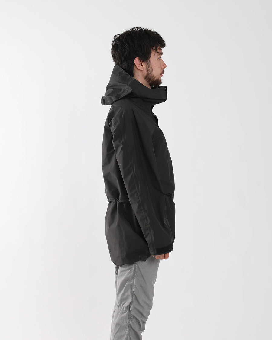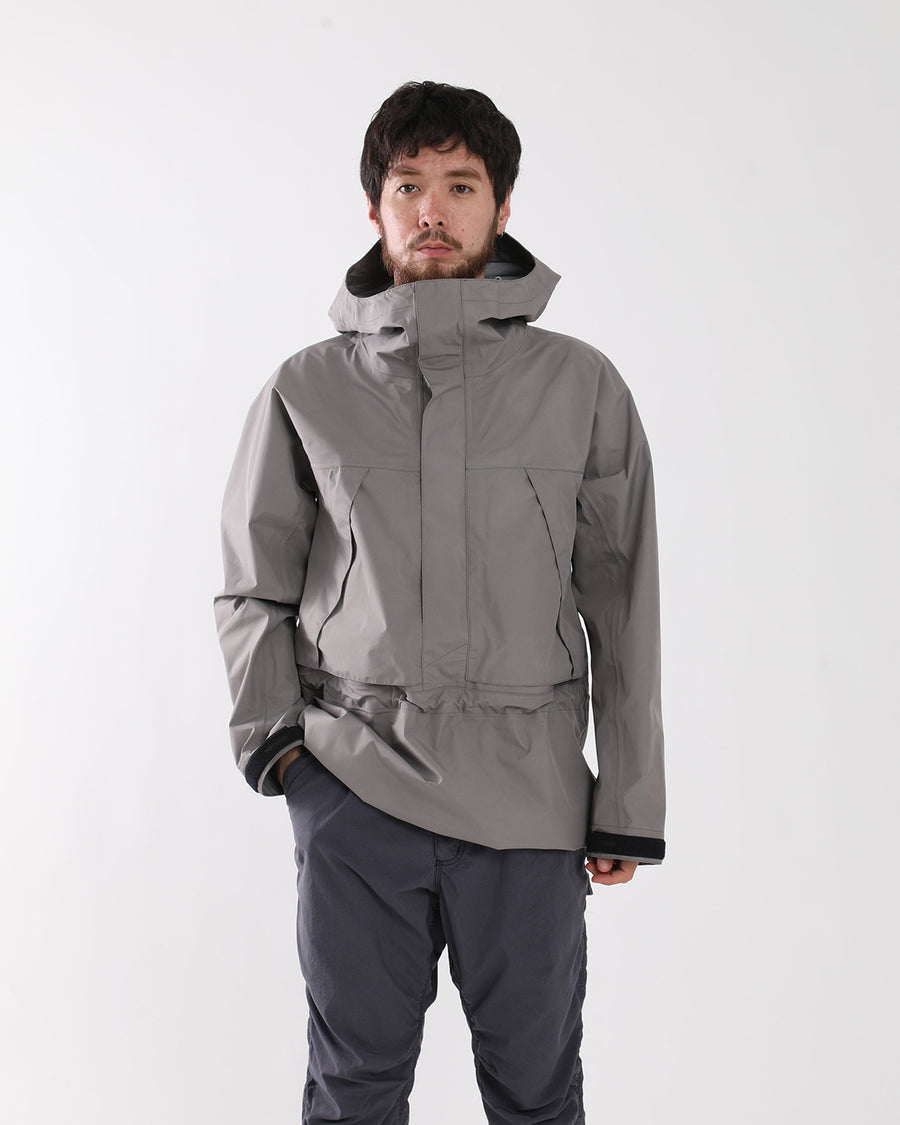 90年代のアウトドアブランドに見られるプルオーバースタイルをベースに、アノラックから派生したやや長めの着丈を取り入れたデザインです。