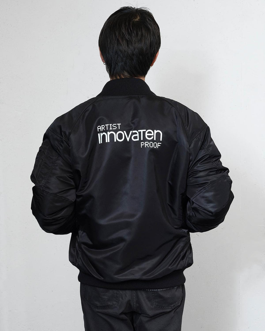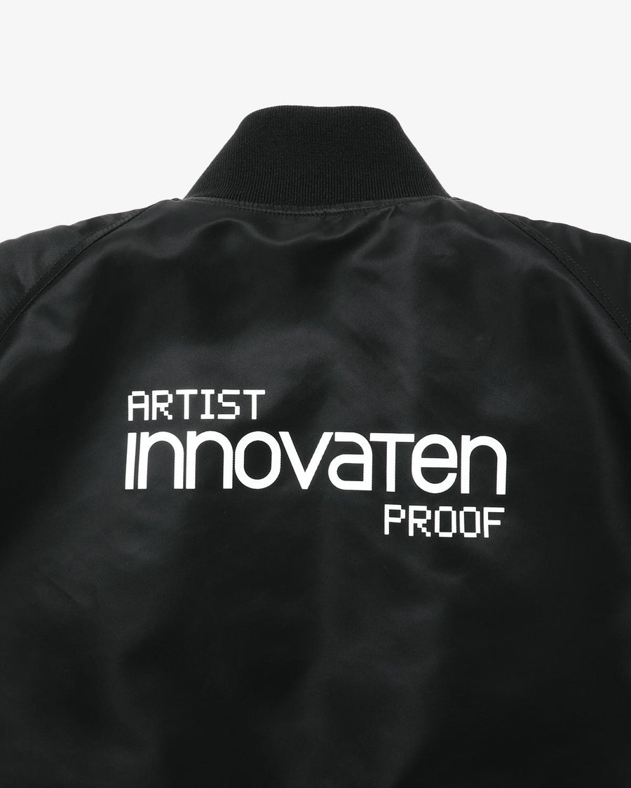 背面には〈ARTIST PROOF〉と〈FRGMT〉のチームアップによる“Innovaten”グラフィックを大胆に配置。さらに袖には〈FRGMT〉ロゴをプリントし、3ブランドのコラボレーションを象徴するデザインに仕上げています。