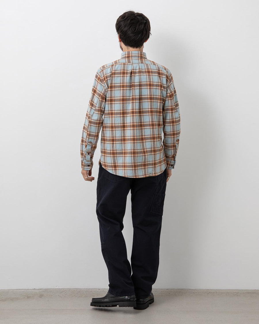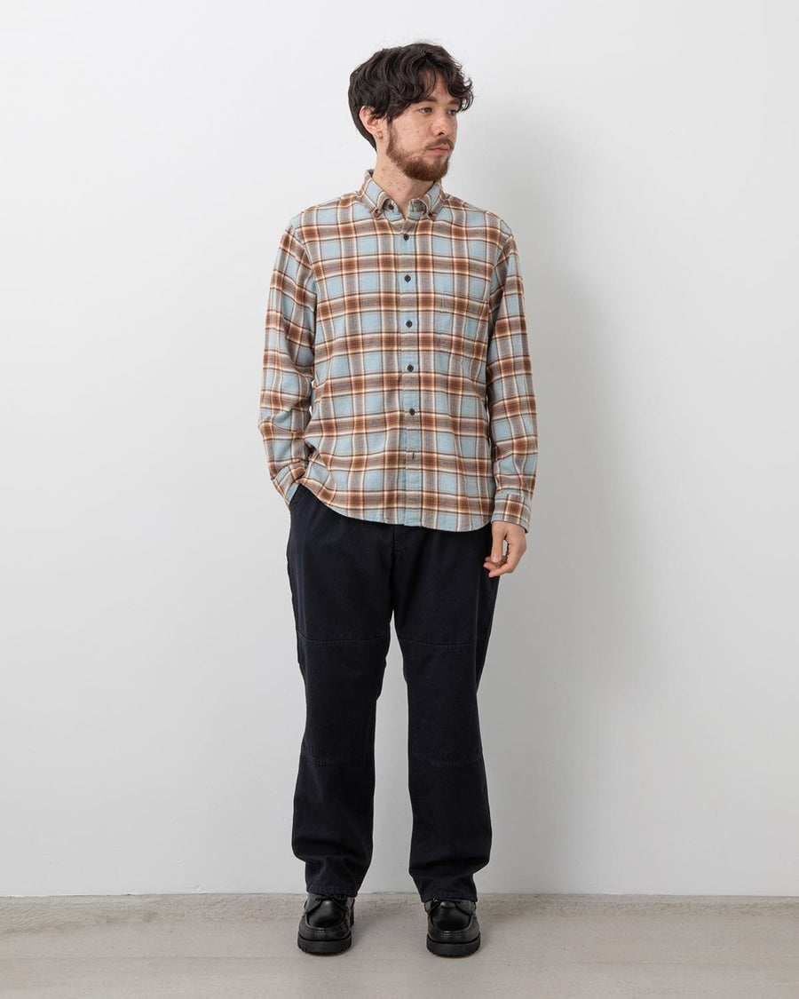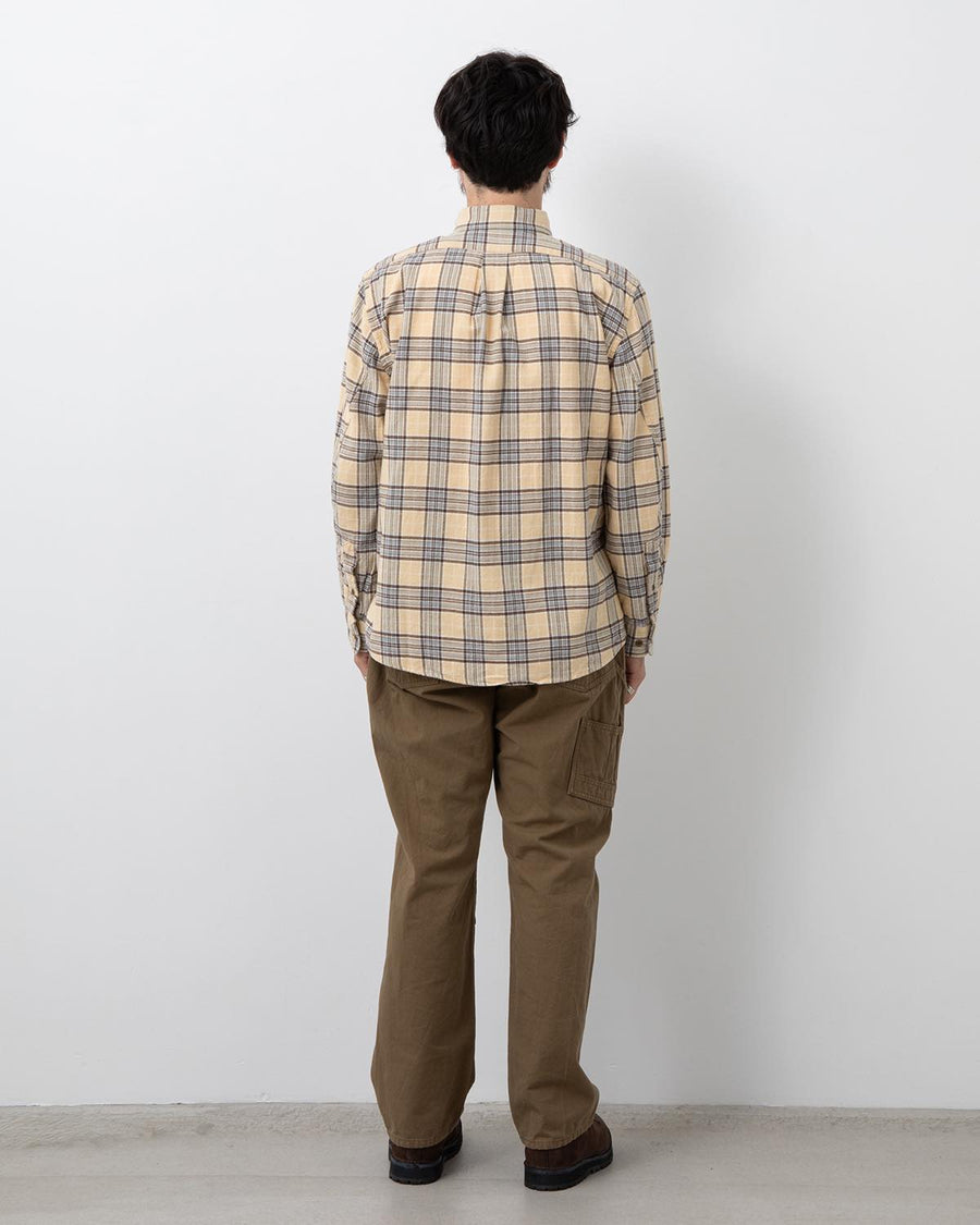ペインターパンツの意匠を落とし込んだラギッドなディテールに加え、腰回りにゆとりを持たせた設計とウエストのボタン仕様サイドアジャスターによって、フィットの調整と多様な着こなしを可能にした一本に仕上げています。