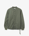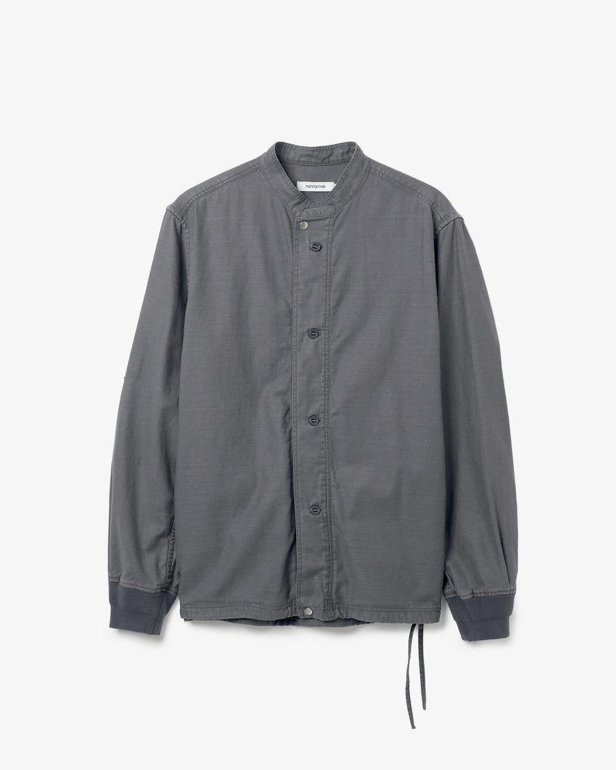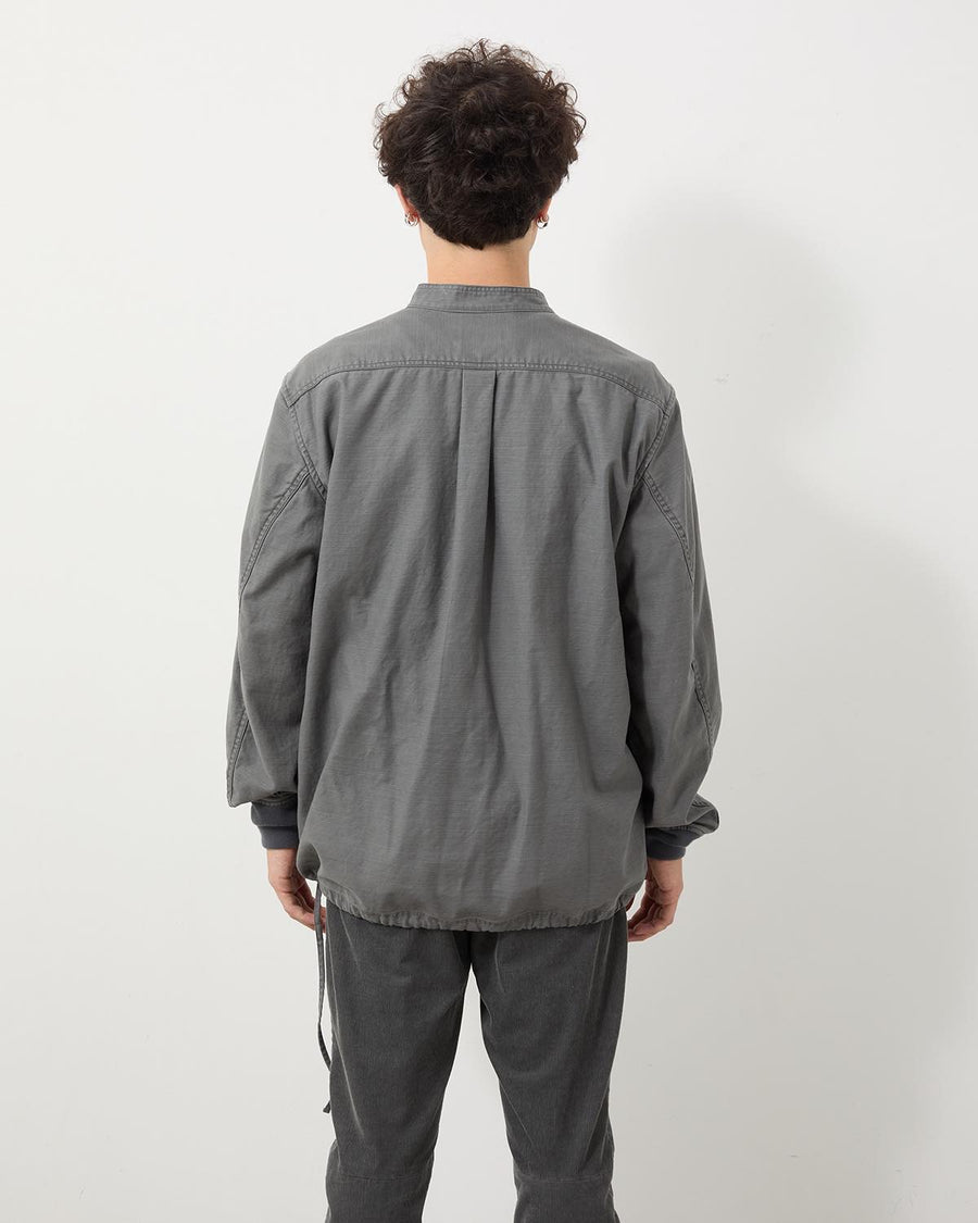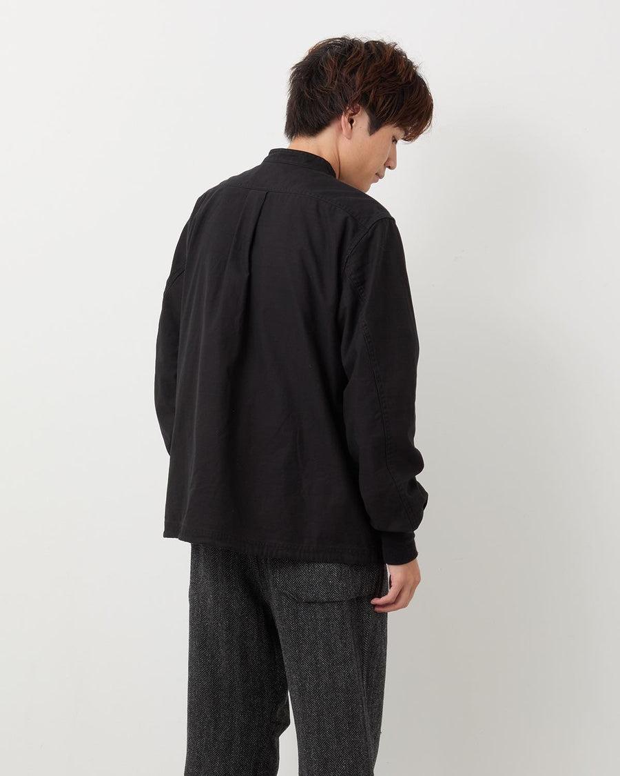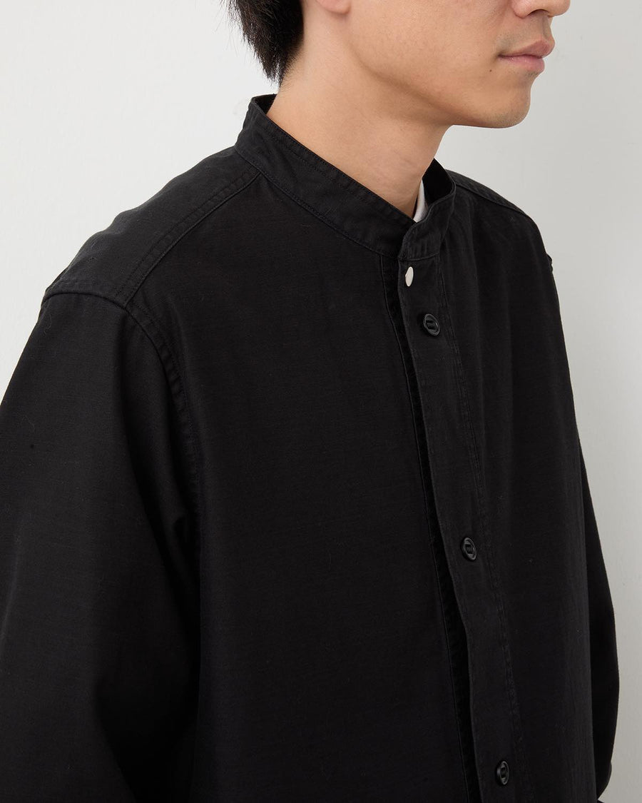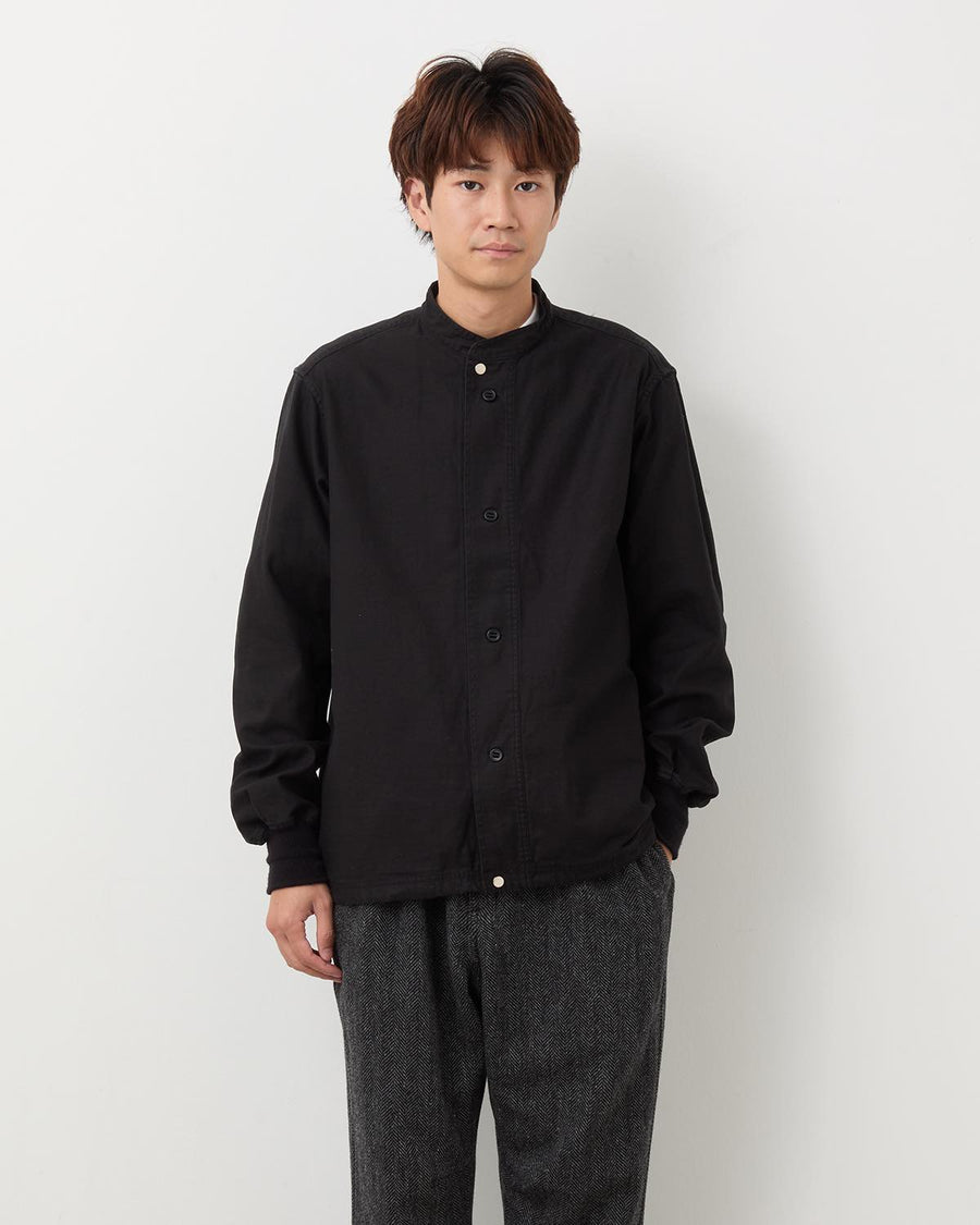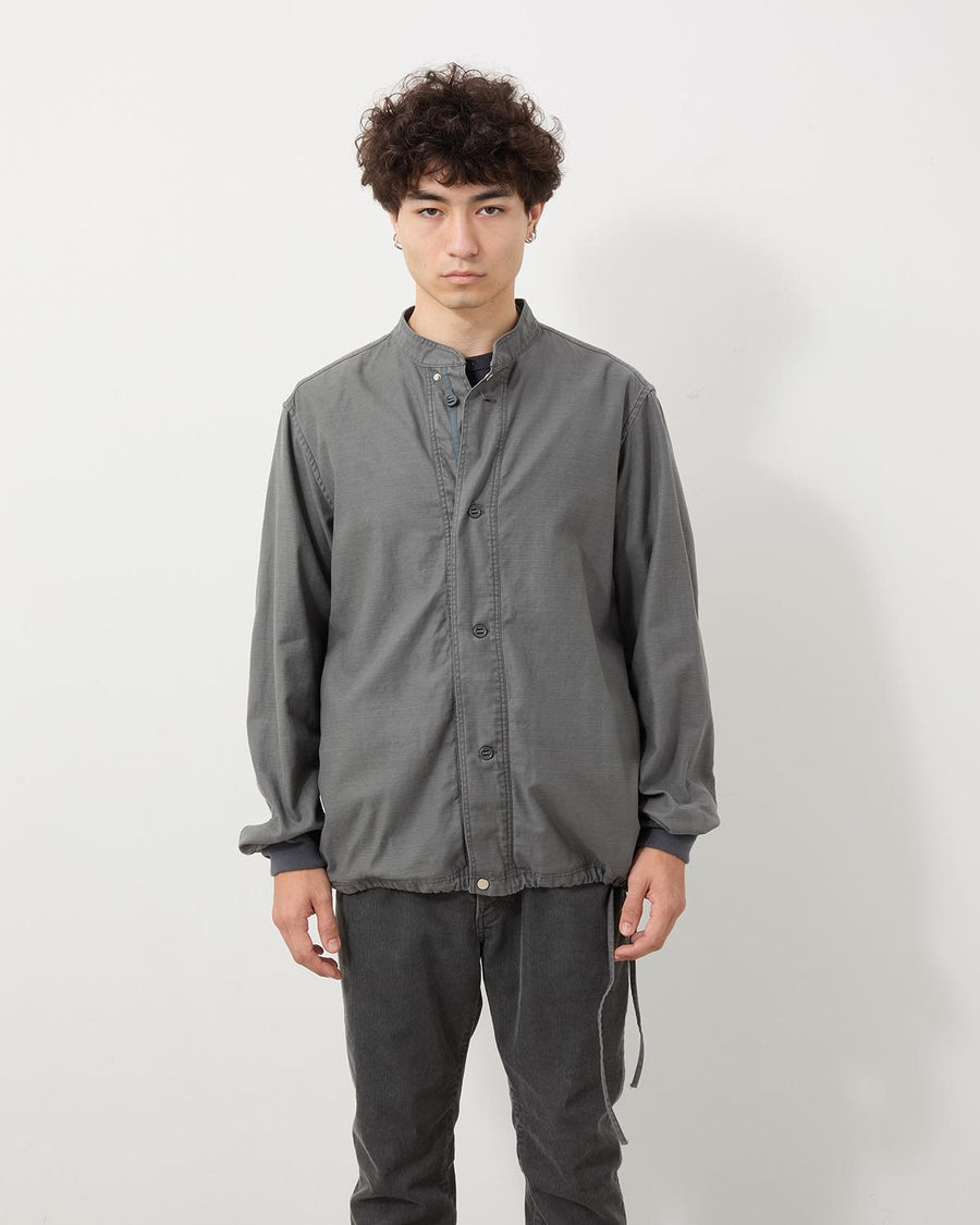 AUTUMN & WINTER 2025 COLLECTIONより、染色加工により風合いを出したバックサテン生地を使用した、スタンドカラーのシャツジャケットです。