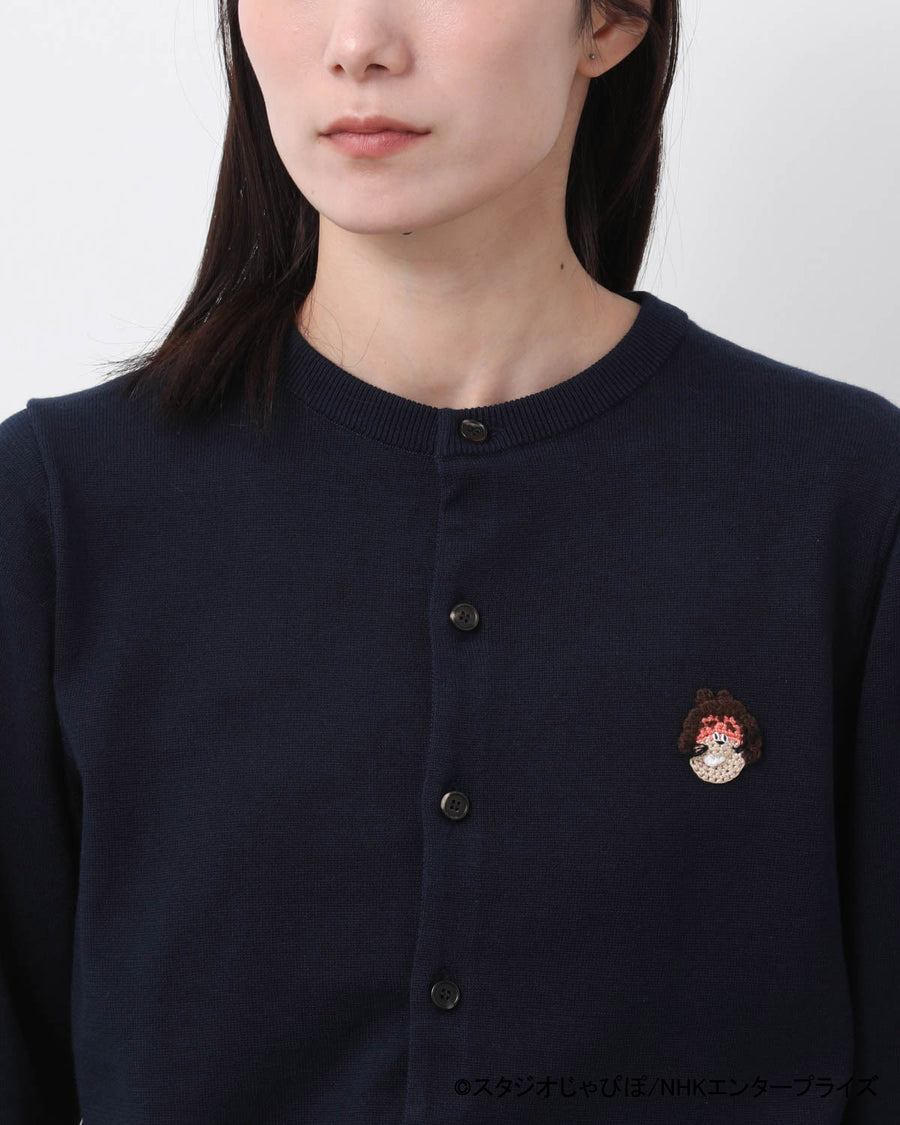 一点一点手編みにて製作されたワッペンをあしらった「じゃじゃ丸 CARDIGAN」です。