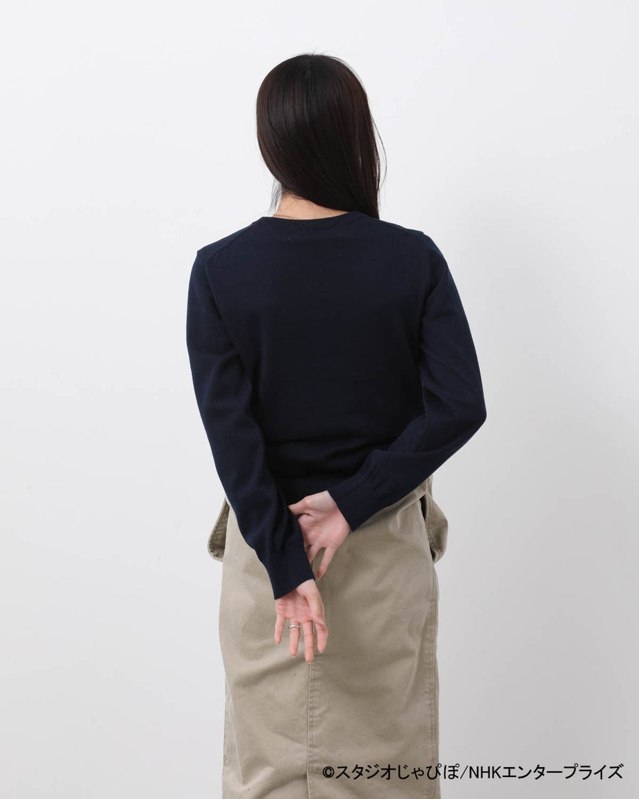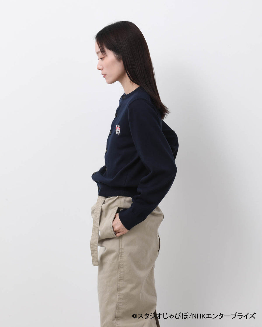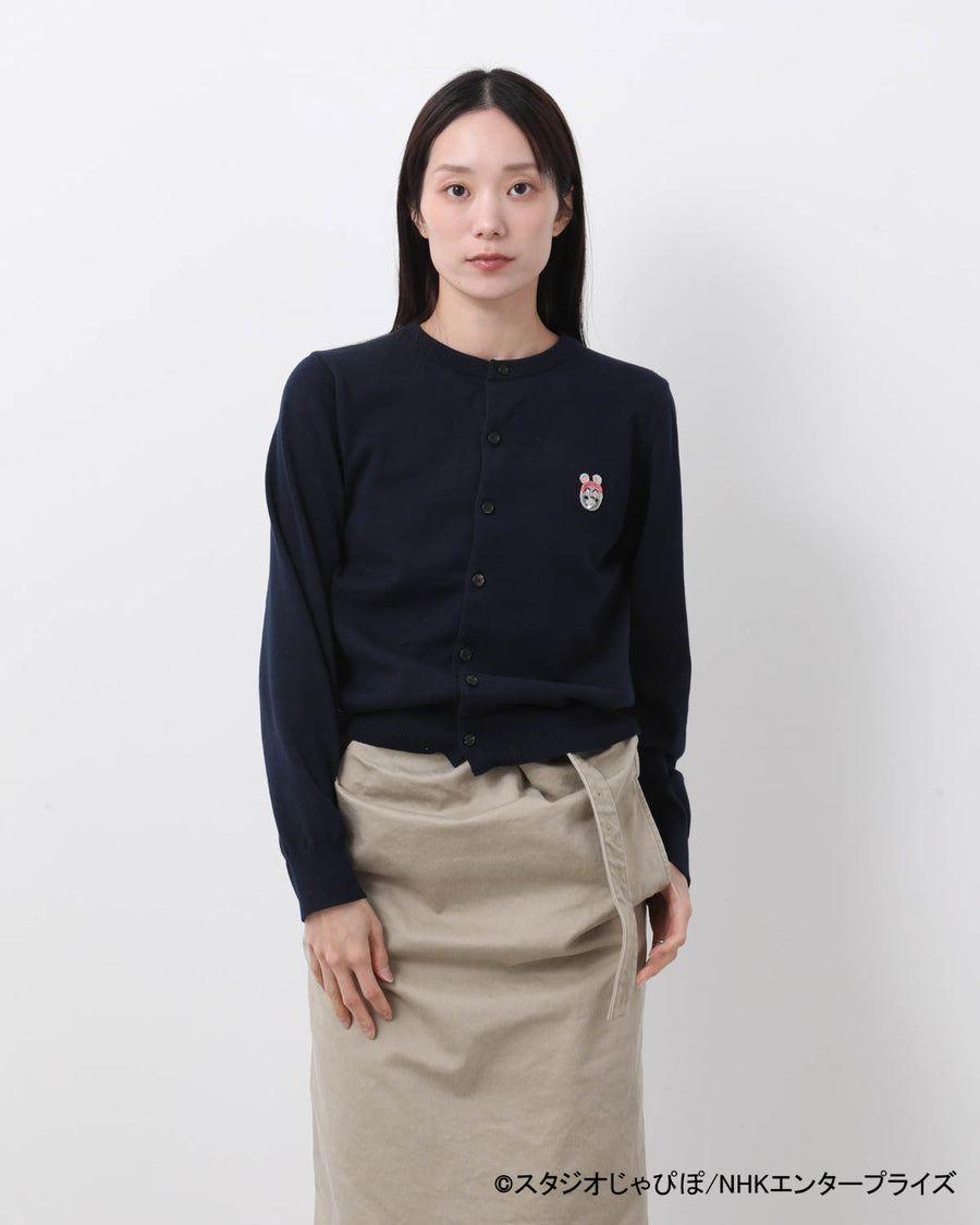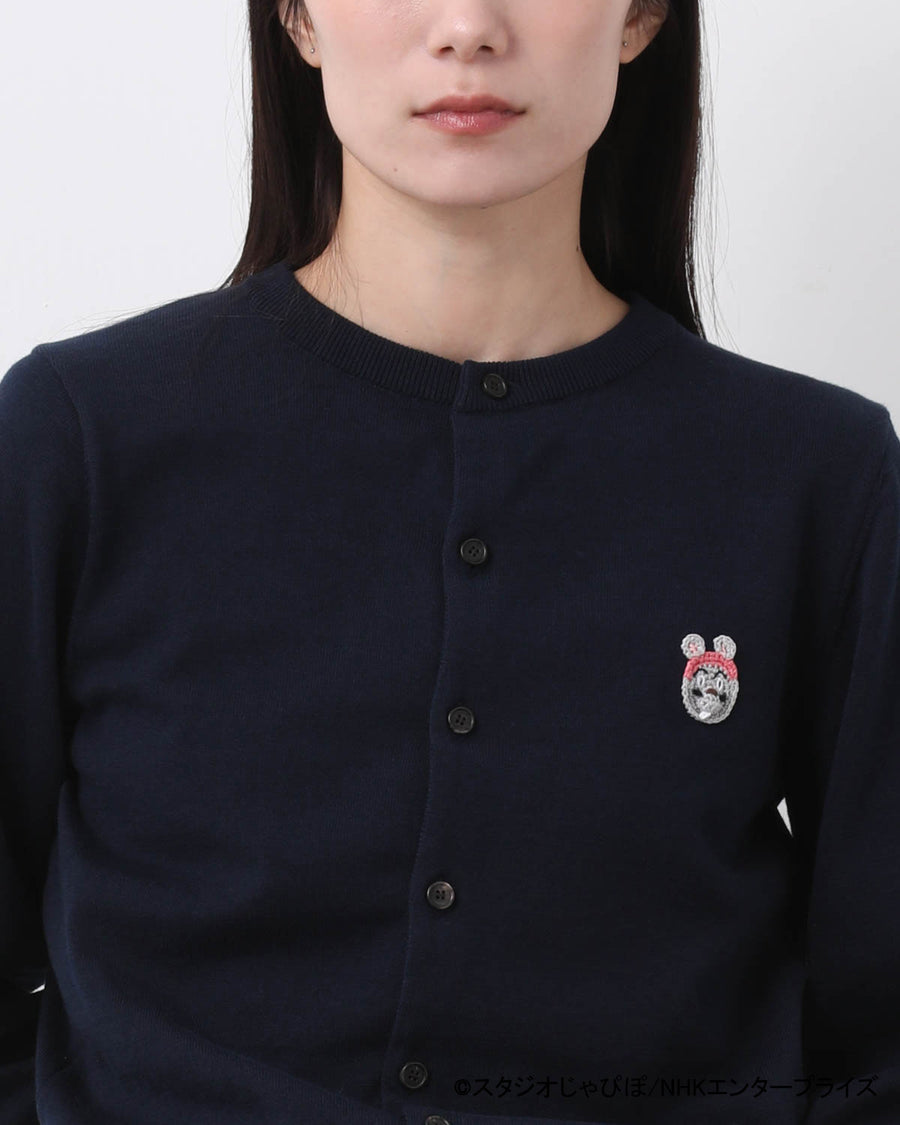 一点一点手編みにて製作されたワッペンをあしらった「ポロリ CARDIGAN」です。