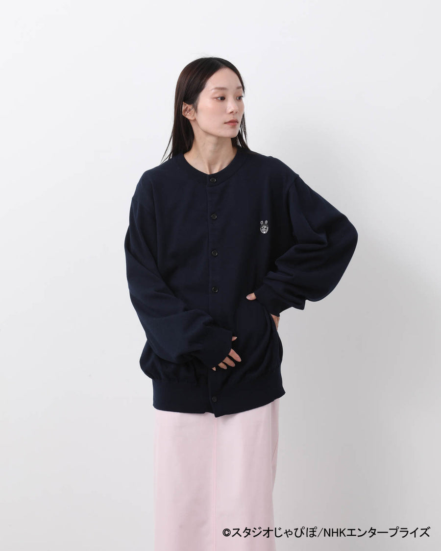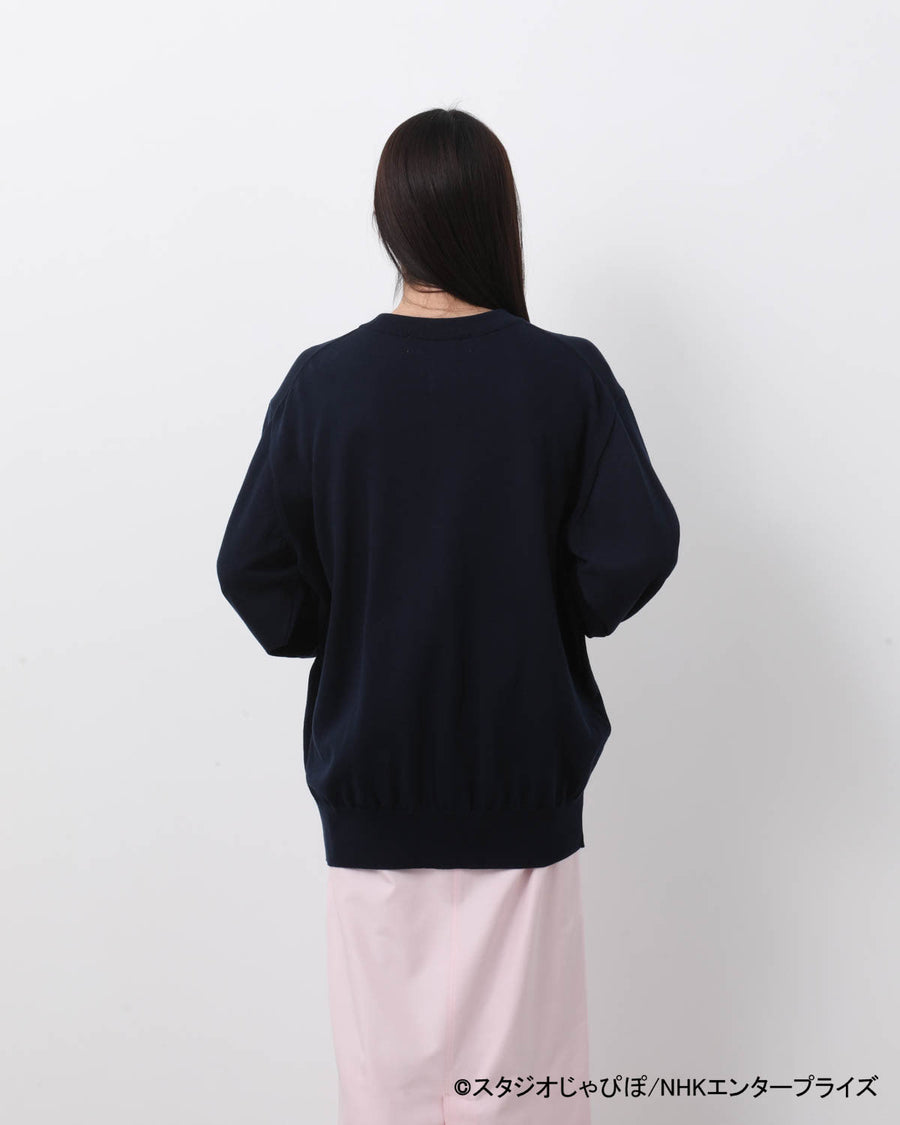 一点一点手編みにて製作されたワッペンをあしらった「ポロリ CARDIGAN」です。