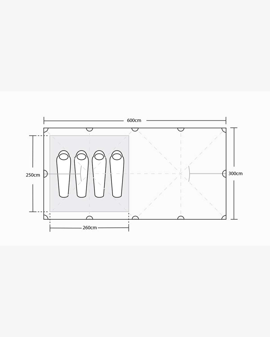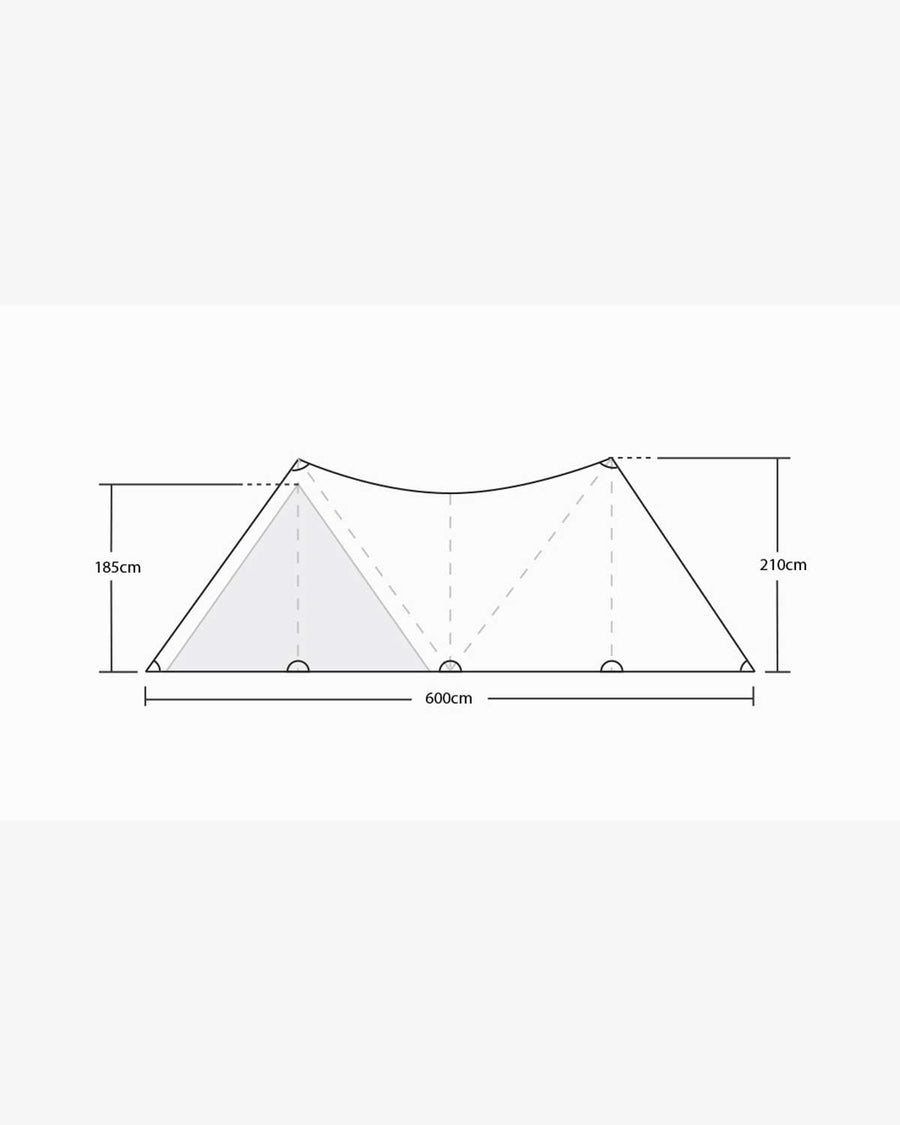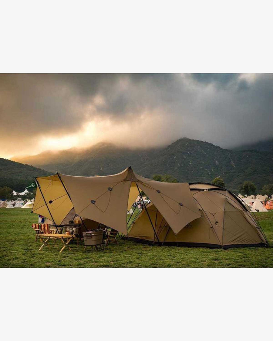 一般的なグループシェルターと比べ約4.5kgと軽量な作りとなっており、別途ポールの使用でタープやグループキャンプのリビングスペースなど様々なアレンジが可能です。