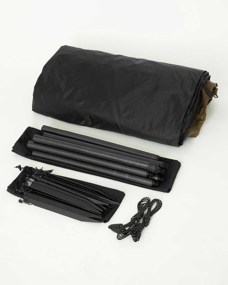 一般的なグループシェルターと比べ約4.5kgと軽量な作りとなっており、別途ポールの使用でタープやグループキャンプのリビングスペースなど様々なアレンジが可能です。