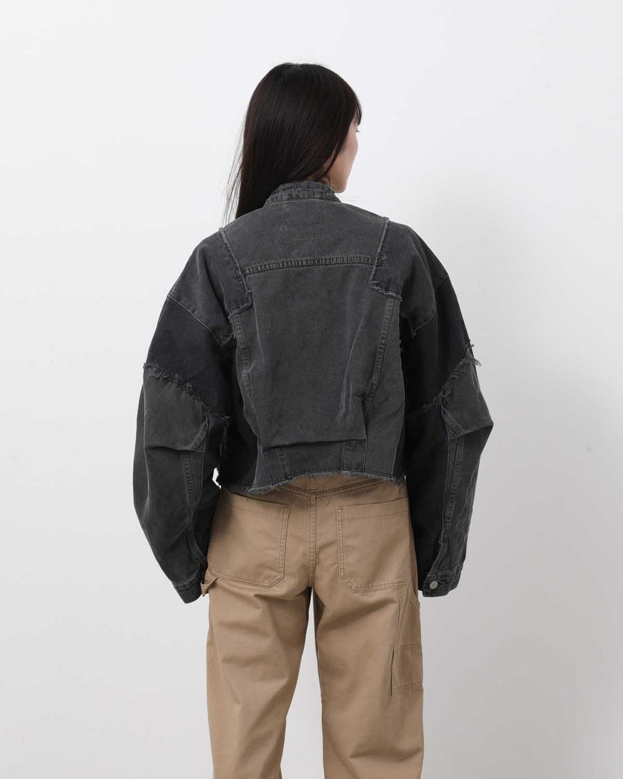 さらに、袖のパッチワーク切り替えにより、立体的な構築感を持たせています。