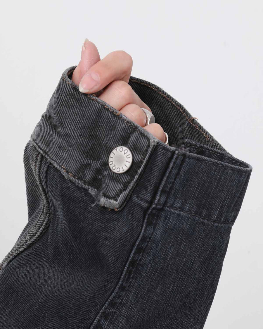 リメイク縫製後にブラックのピグメント染めとバイオウォッシュ加工を施し、古着本来の色差をわずかに残した、奥行きのあるDARK GRAYに仕上げています。