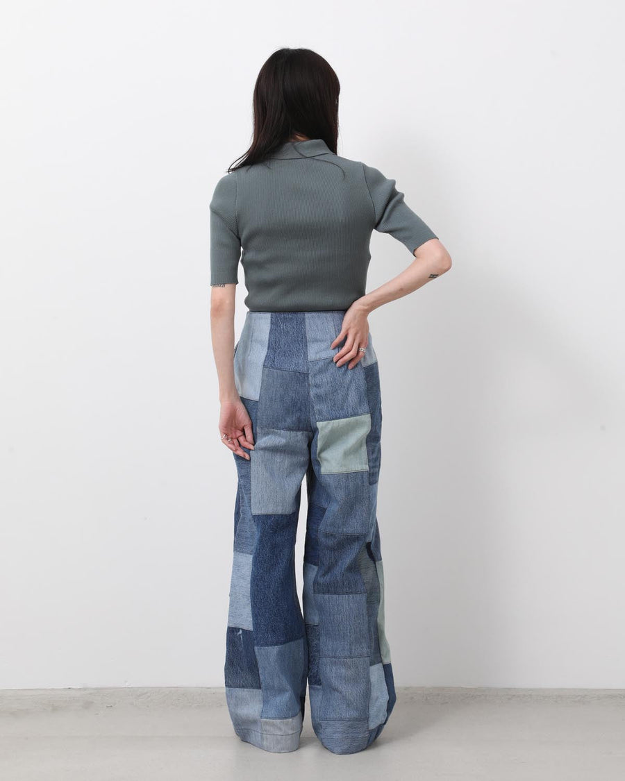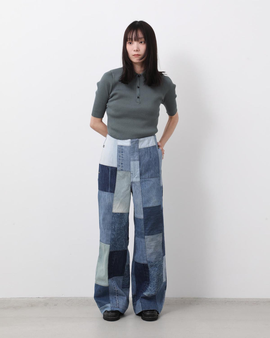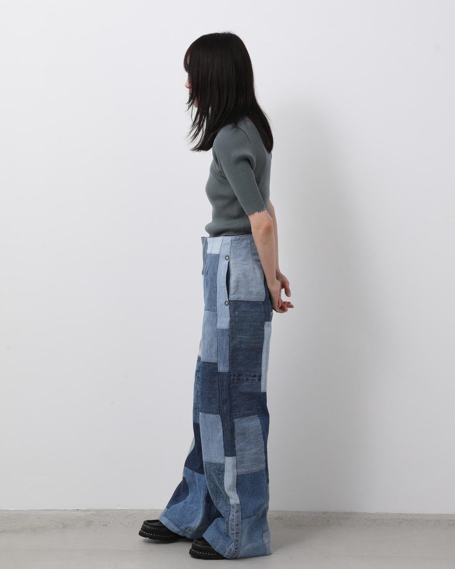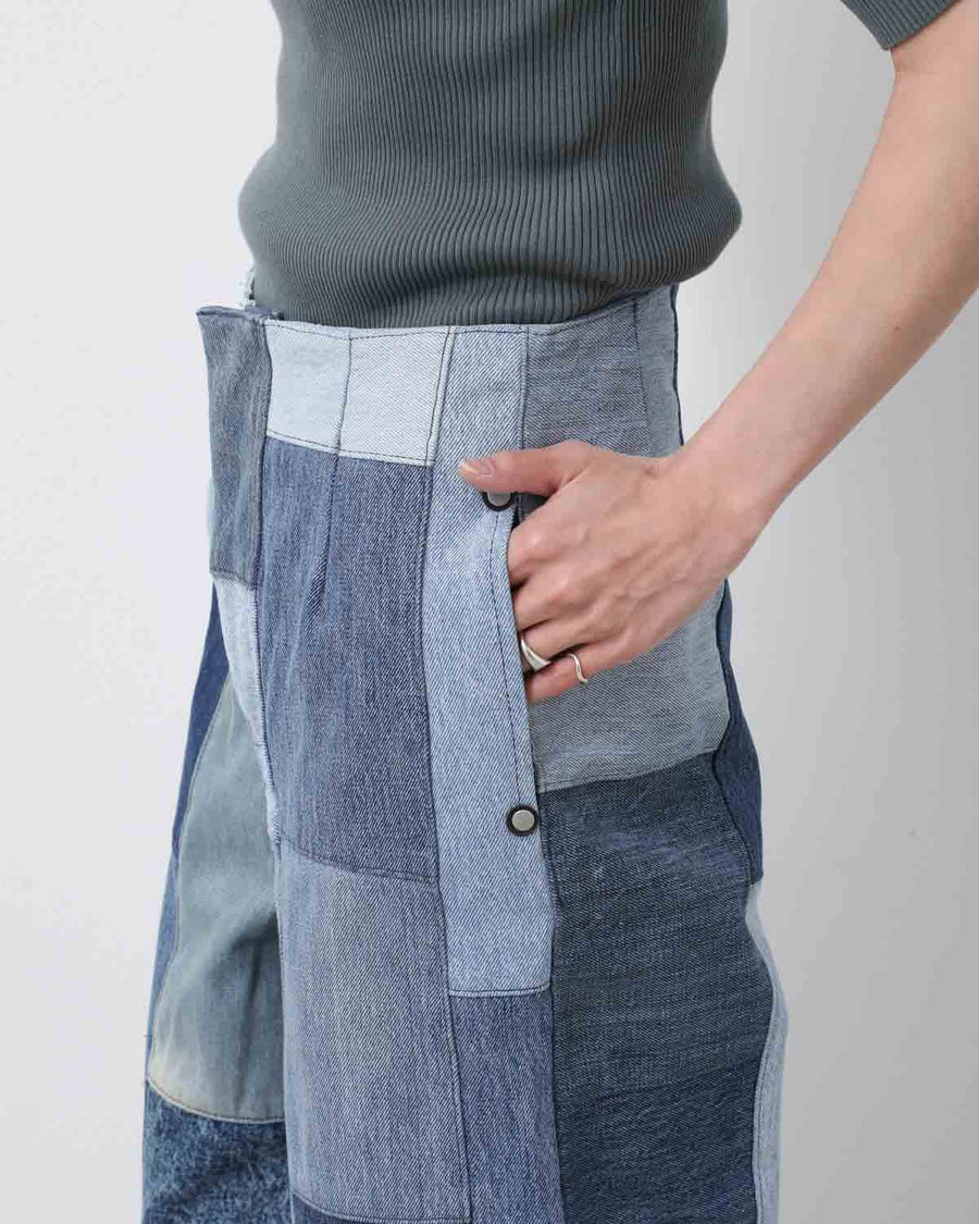 数種類の古着デニムとデットストックのデニム生地を使用して作成したデニムトラウザーです。