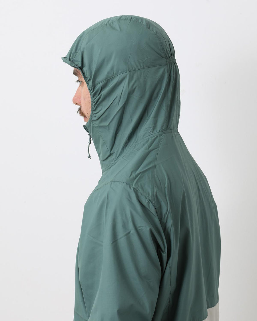 Pertex® Quantum 50デニールナイロン(72gsm)を使用し、フルオロカーボンフリーDWR(耐久撥水)加工を施した軽量ウィンドシェルジャケットです。