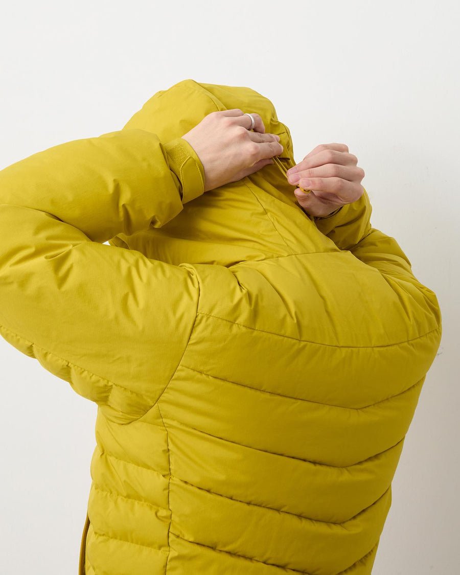 ・フルアジャスタブル仕様のヘルメット対応ダウンフード