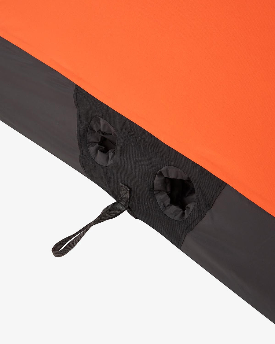 ボトム部分にはDWR加工を施した70Dナイロン製バスタブ構造と完全シームテープ処理を採用し、地面からの水分や湿気を強力にシャットアウト。さらに、横方向のDACポールが居住空間を最大化し、2名が快適に座れる十分なヘッドルームを確保しています。